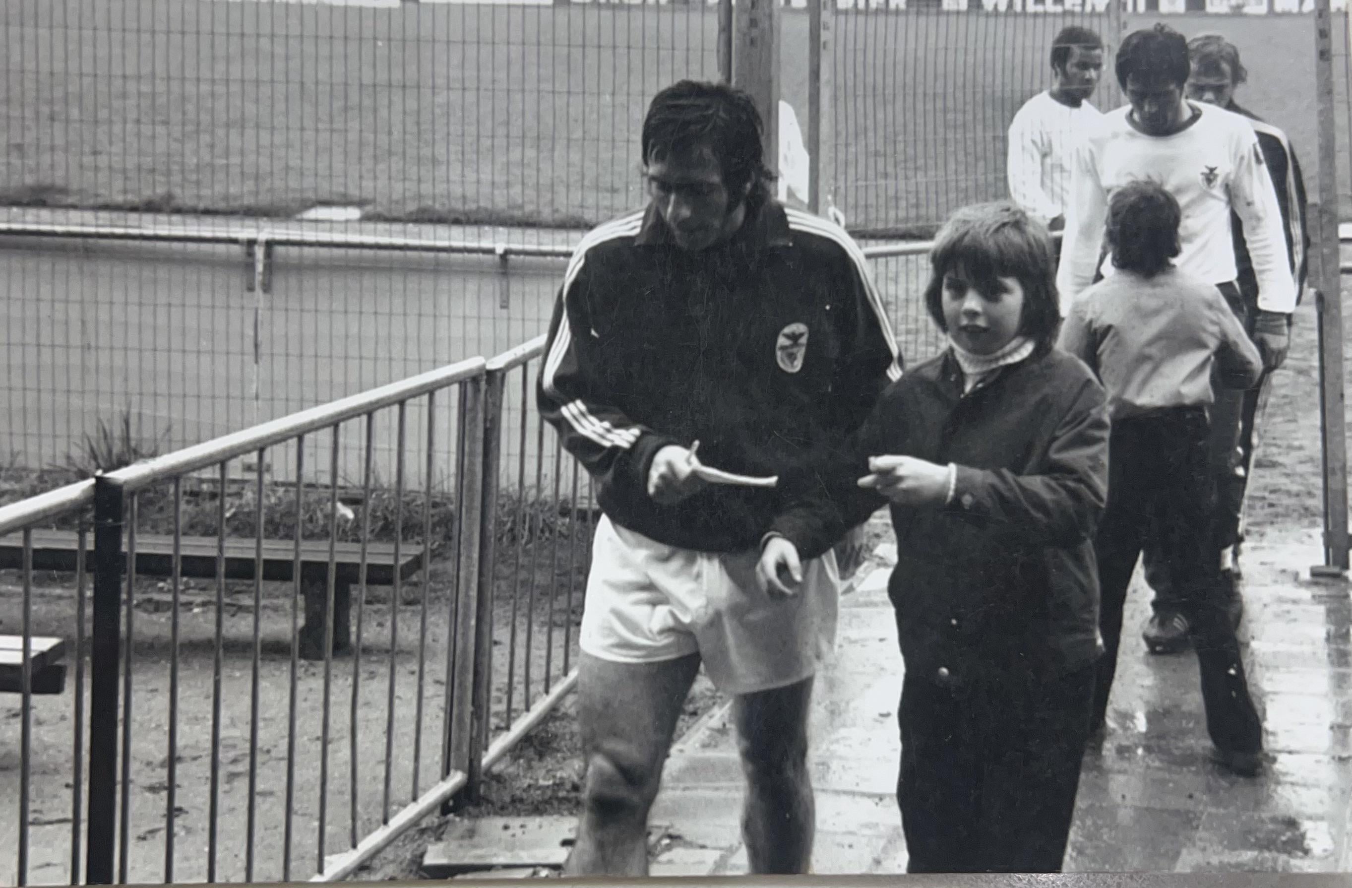 I’m not sure, but I guess he is Adolfo Calisto, left-back from the 70s. The guy behind him looks to be Jaime Graça. That’s an amazing photo!