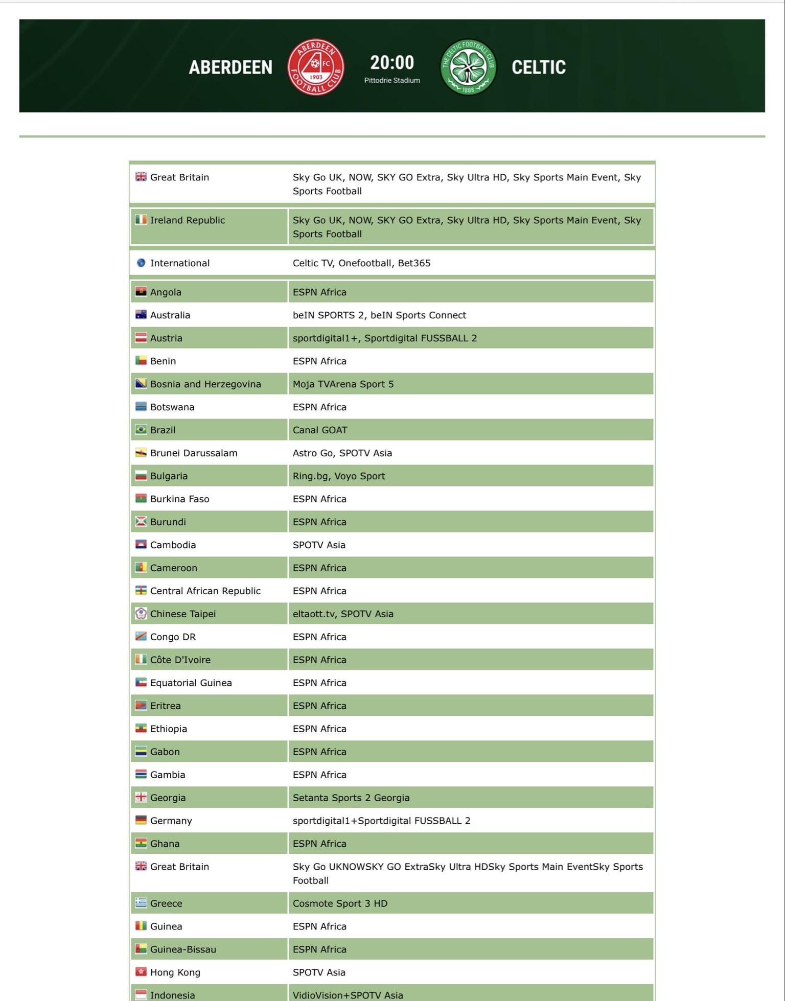 Share Facebook Twitter LinkedIn Pinterest Bluesky Threads Here’s the top of the list… 82 countries in total. Visit the site if you can’t see your country. Hail hail by CeltsOnTV Celtic celtic football club scotland