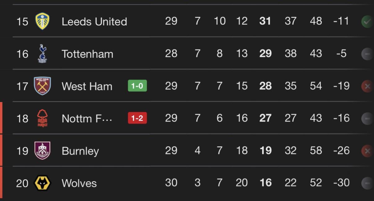 We just need to focus on getting ourselves to 40 points because there is no way all of Leeds, Spurs and Forest will get to that.