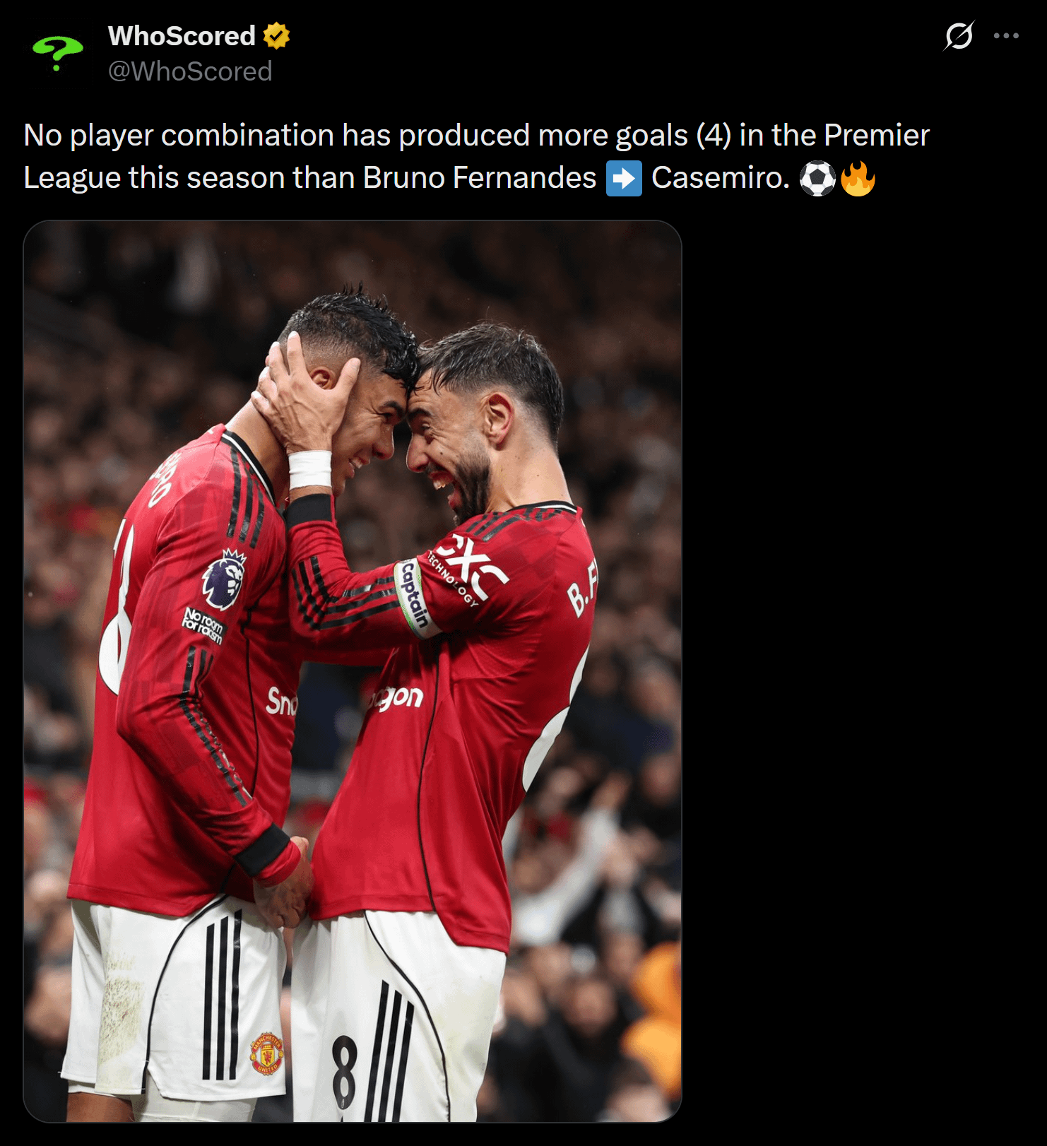 Share Facebook Twitter LinkedIn Pinterest Bluesky Threads No player combination has produced more goals (4) in the Premier League this season than Bruno Fernandes ➡️ Casemiro. [WhoScored] by nearly_headless_nic Manchester united Manchester United FC Manchester United Football Club