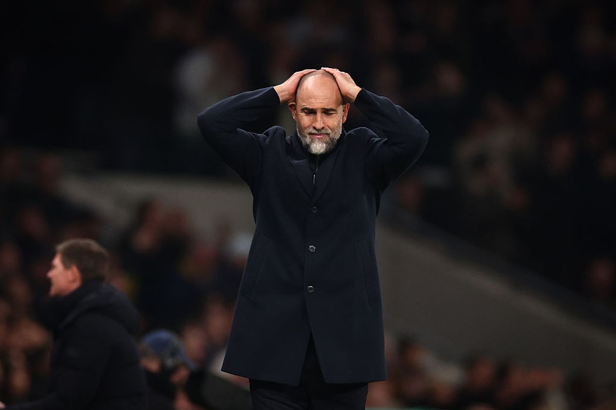 Igor Tudor reacts to the red card for Micky van de Ven during the Premier League match between Tottenham Hotspur and Crystal Palace