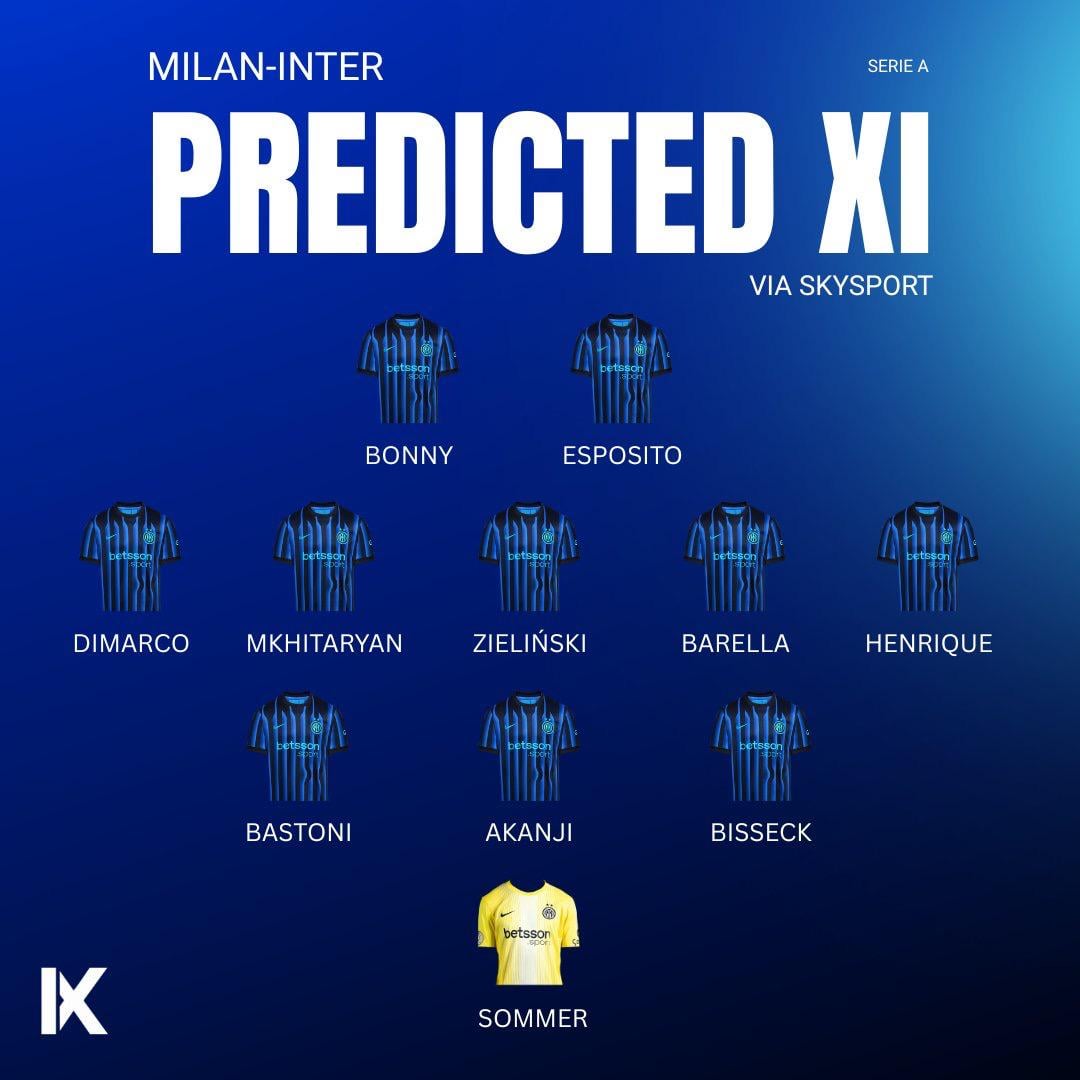 Share Facebook Twitter LinkedIn Pinterest Bluesky Threads [SkySport] ⚫️🔵🚨 Inter predicted XI to face Milan. by Advanced_Zombie_4199 F.C. Internazionale Milano fc inter milan football inter milan Italian Football Italy serie a Soccer