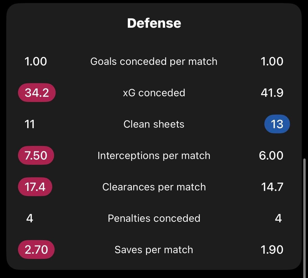 Same goals conceded per match? but weren’t we much better defensively with Inigo?