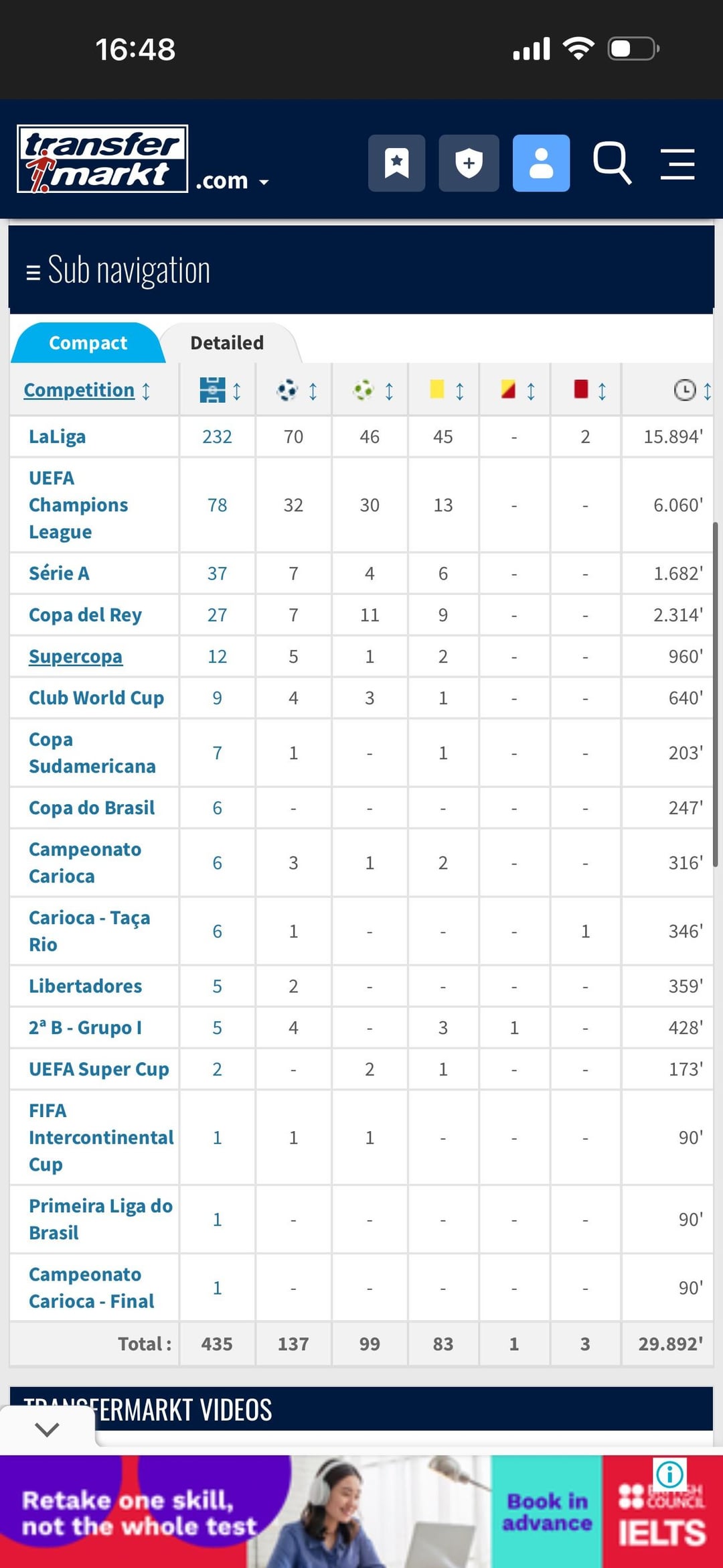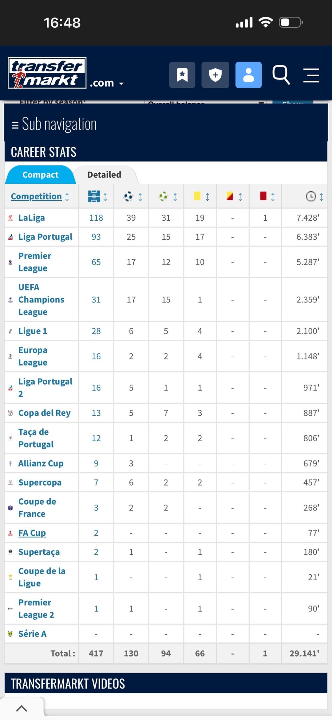 Raph is older but played less games, that’s interesting. You would think Raph would have more games but that just shows how much more games you get to play by playing for CL teams