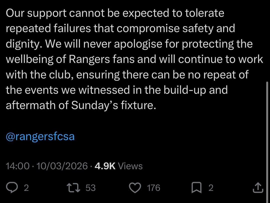 2. Even the Huns on their Page is cringing at that post. 0 Mention of their own fans. Who btw there was at least 3x the rangers fans on the pitch looking to cause bother than there was Celtic fans celebrating.