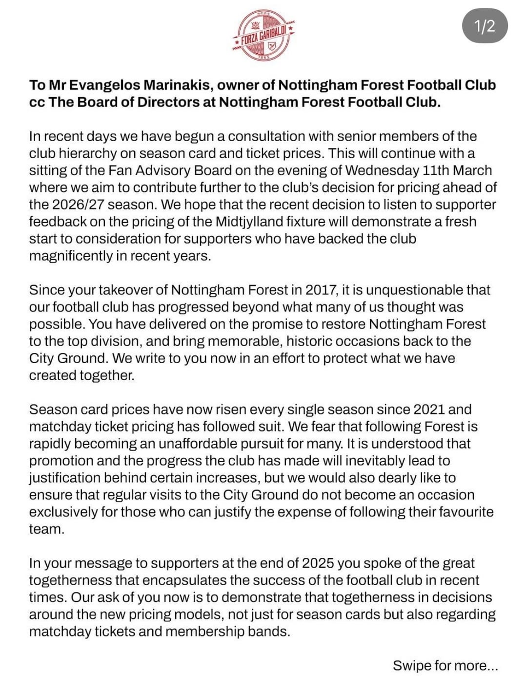 Share Facebook Twitter LinkedIn Pinterest Bluesky Threads Forza Garibaldi Statement by Jarkymalarky Nottingham Forest Nottingham Forest Football Club