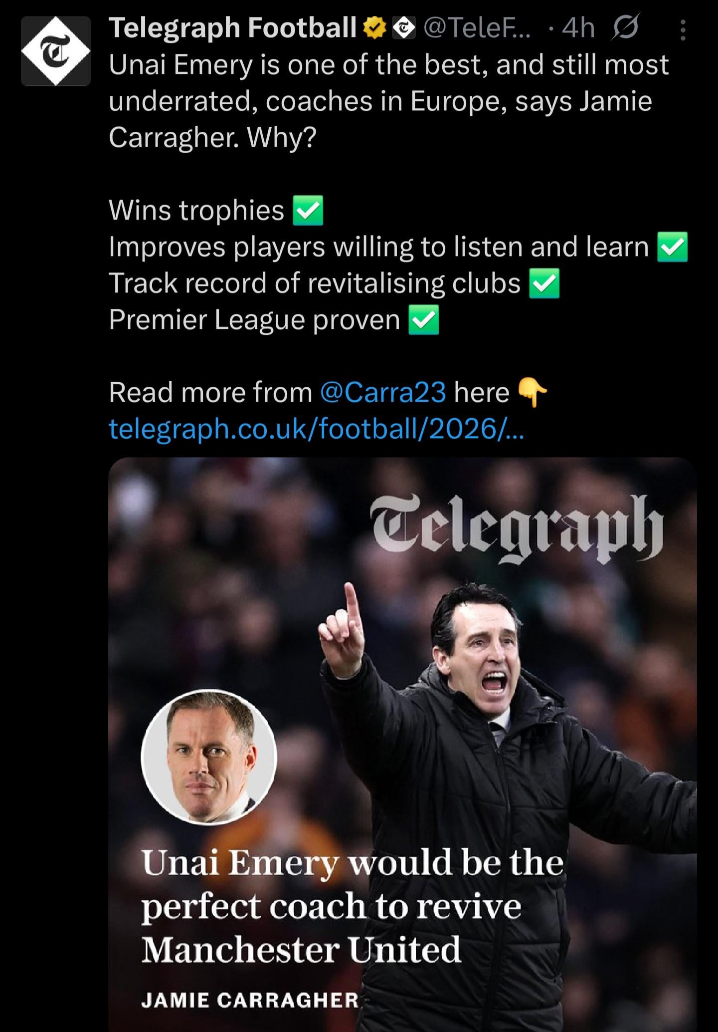 Carragher knows fuck all about how Emery operates. He would never go near Man Utd as he likes to have a lot of control.