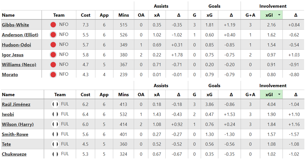 Over their last six Gameweeks, these are both sides’ best players for expected goal involvement (xGI):