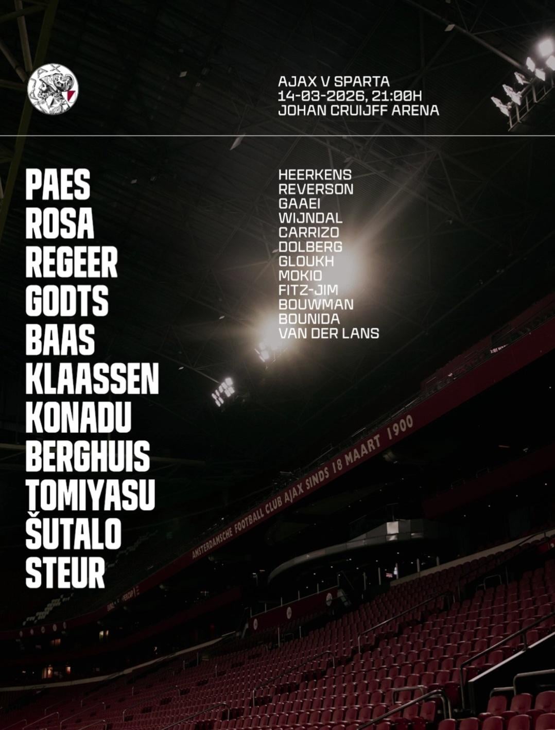 Foroloca on March 14, 2026 7:01 pm KOM OP 3 punten! GODTS______KONADU______BERGHUIS ____________KLAASSEN _____STEUR__________REGEER TOMIYASU__BAAS__SUTALO__ROSA _____________PAES