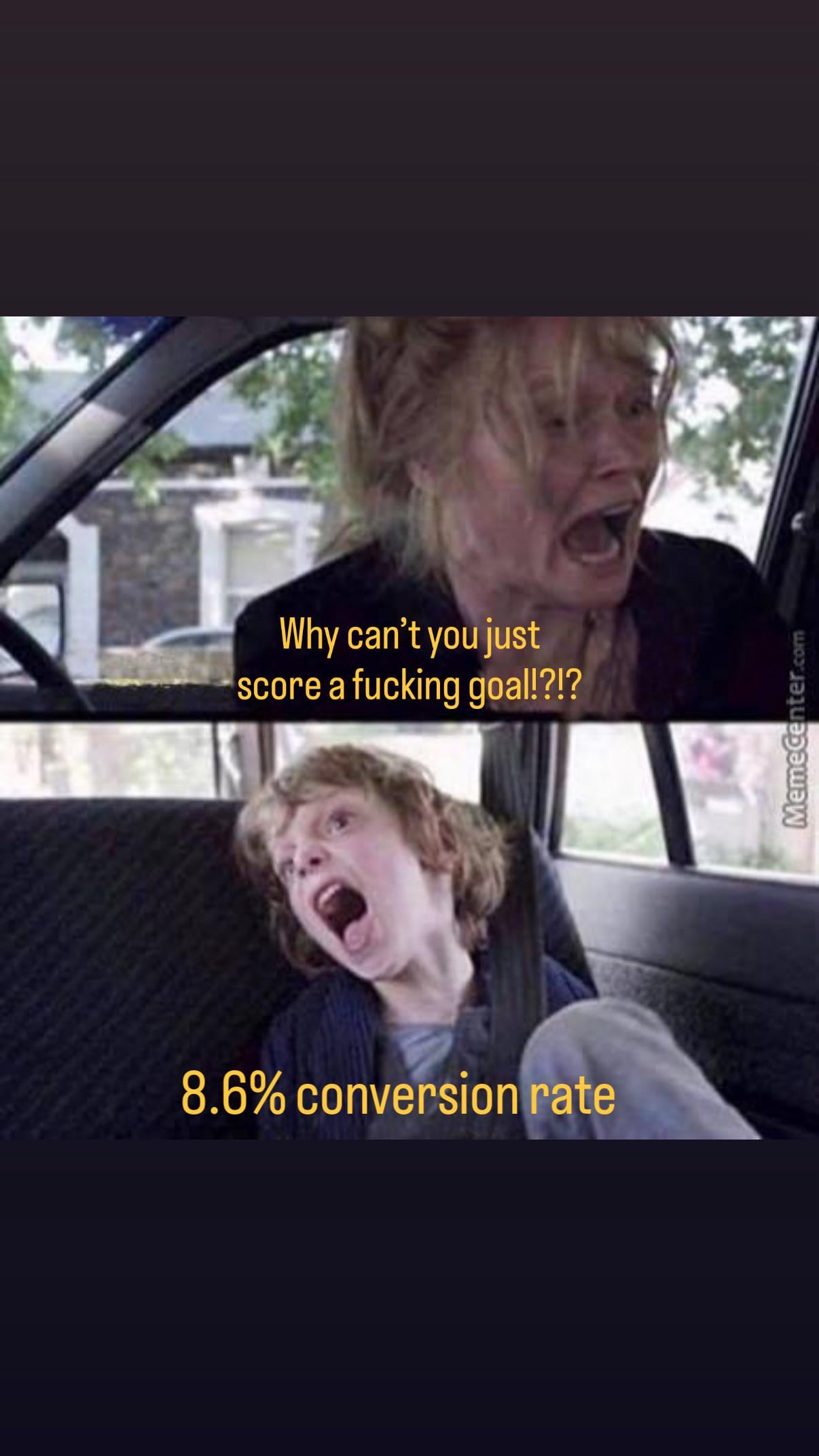 Because we create fuck all really, just a bunch of shots that are unlikely to go in, no wonder all of our goals so far under Pereira have been class because we don’t create anything else.