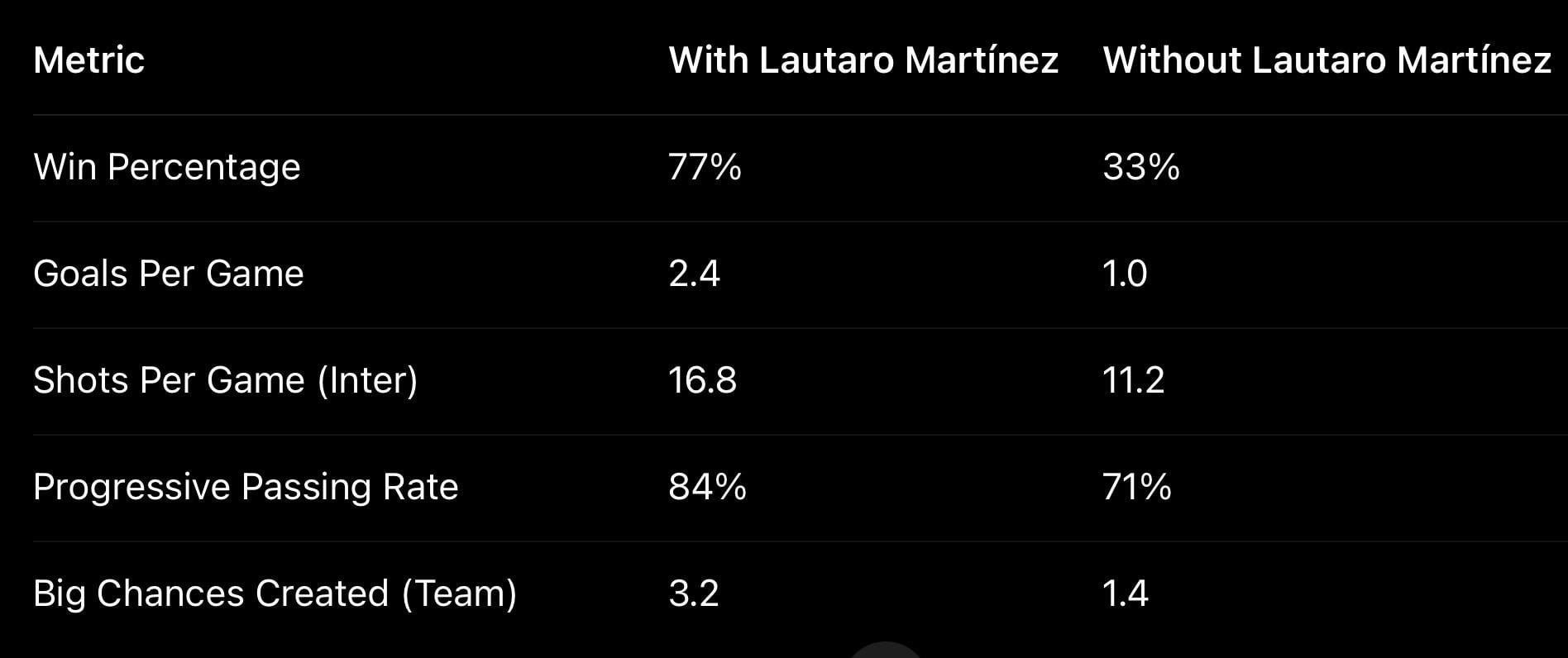 Ok, mandatory preface that I hope will limit the otherwise inevitable comments: yes, Lautaro is very important for Inter, especially on those tricky matches against smaller teams that park the bus. Yes, his injury is definitely affecting Inter.