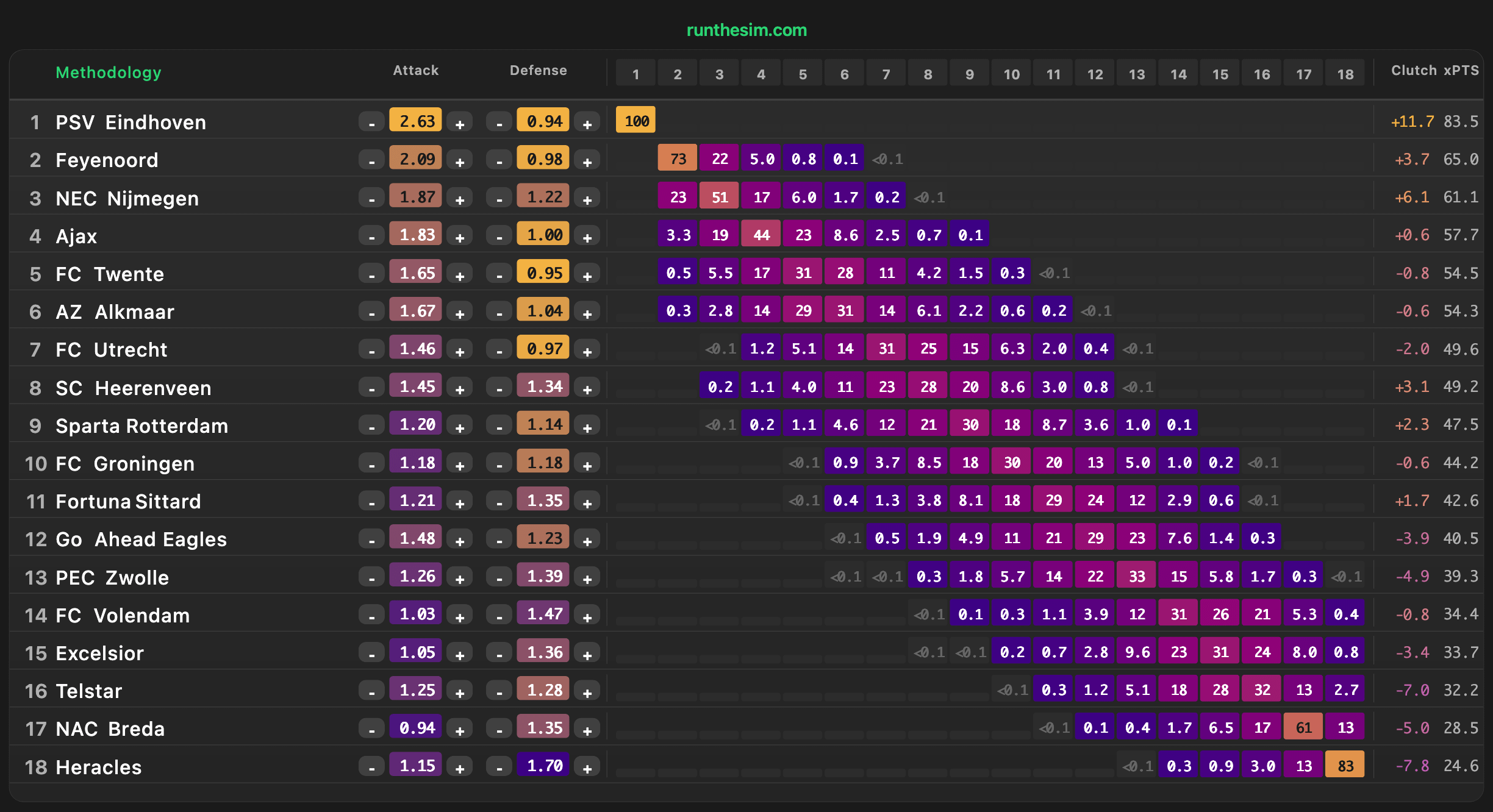 Voetbal is niet te simuleren, al helemaal de eredivisie niet.