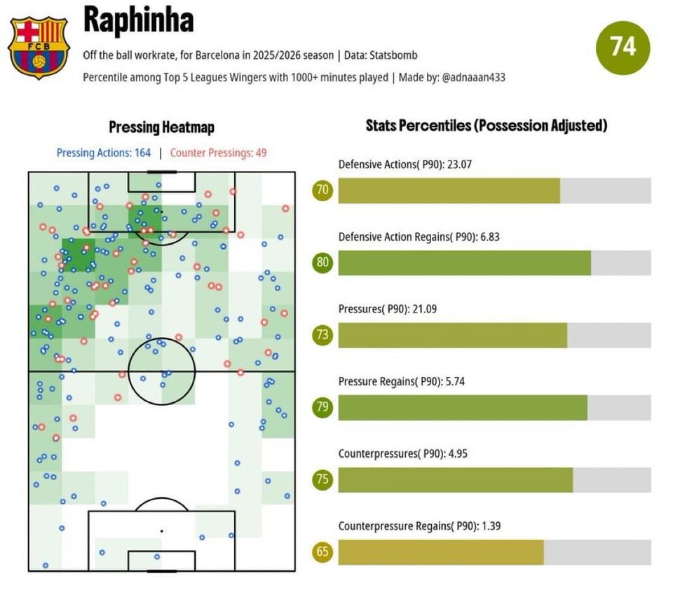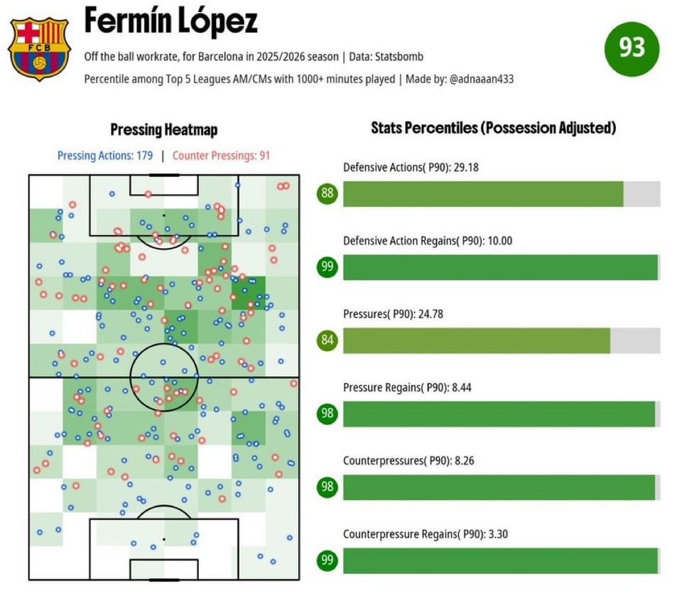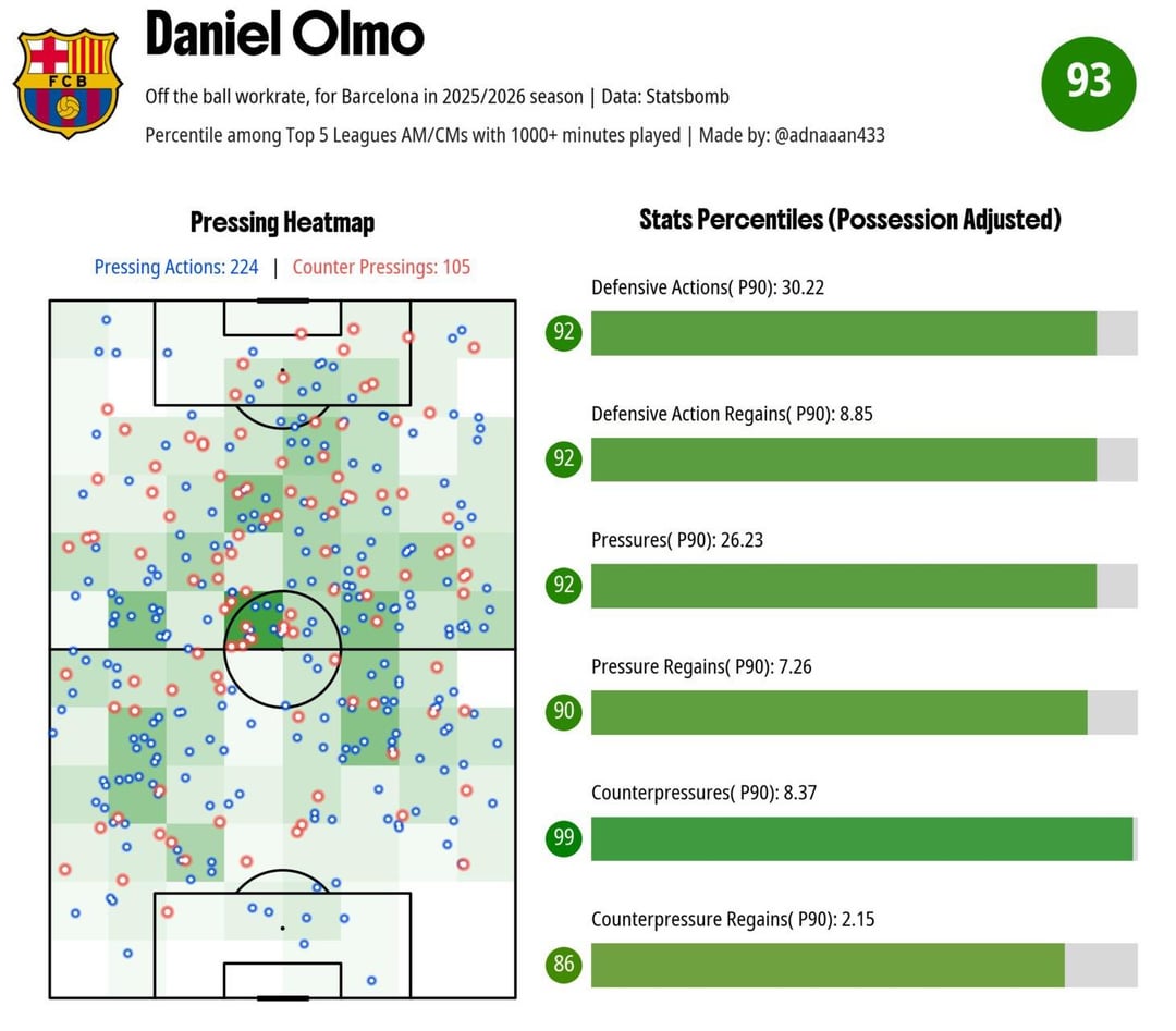 • Olmo, massive improvement compared to last season’s pressing numbers