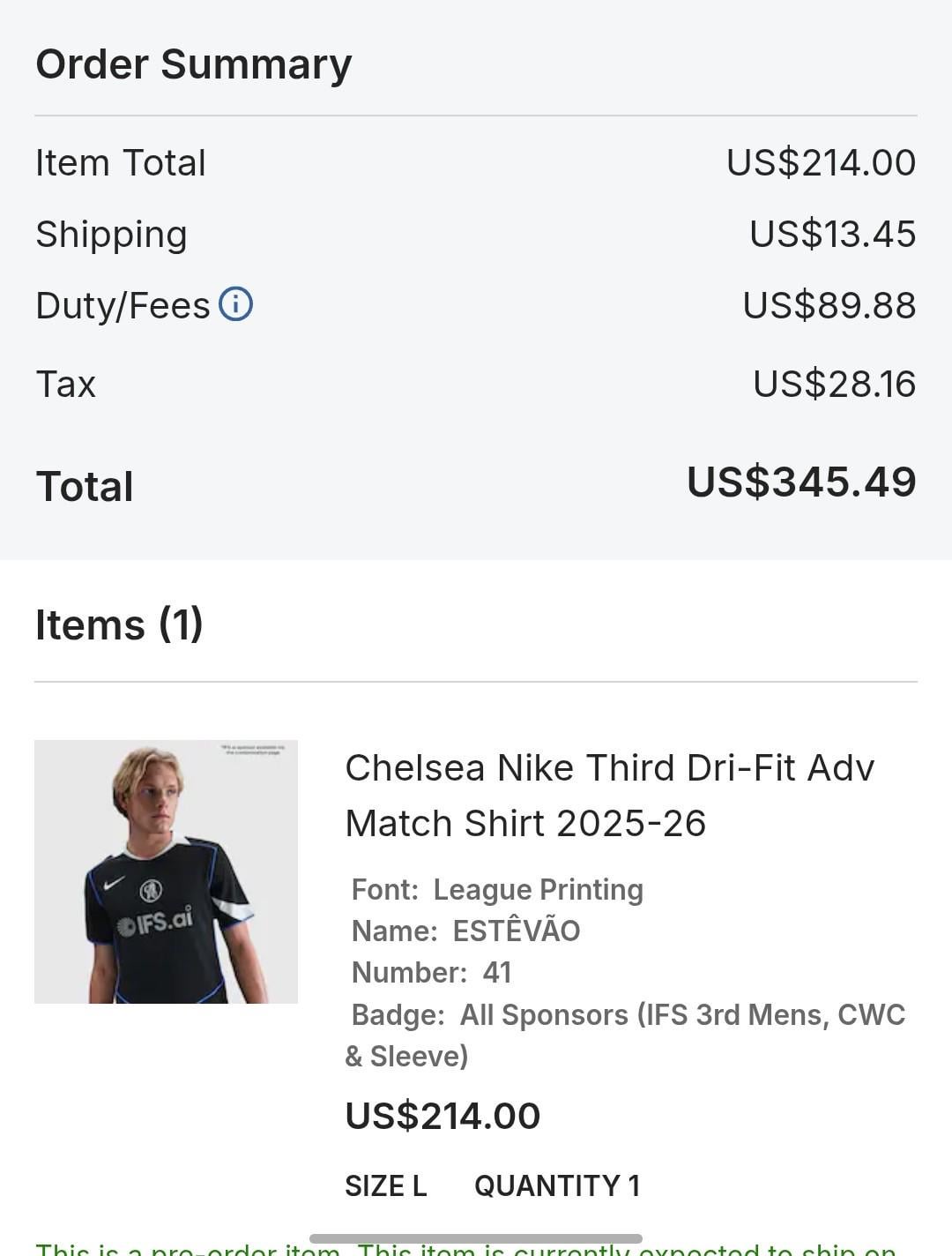 Wanted to preorder the third kit with all the bells and whistles and this is the total for one effing shirt? look at the tarrif charge! I'll pass. I really wanted this 😂