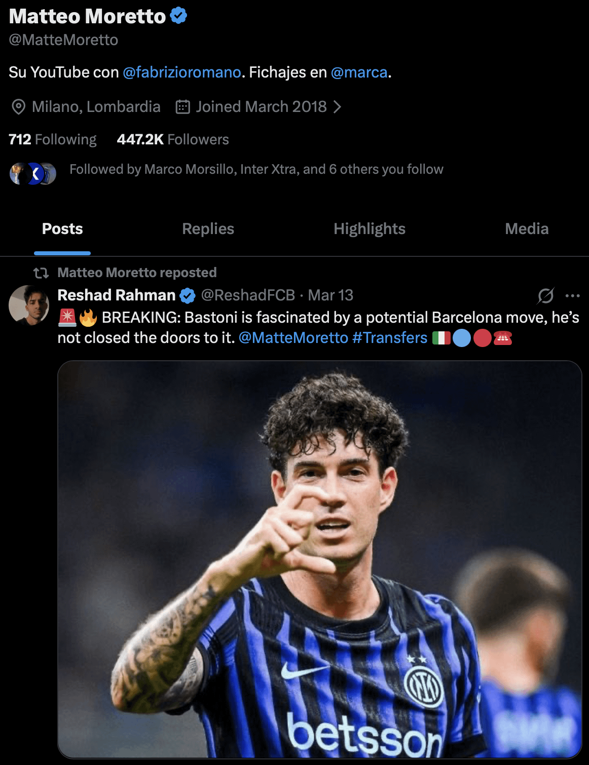 The most trustable journalist for Inter news, Matteo Moretto has again reposted the news of Bastoni possibly moving to Barca. Bastoni earlier even liked several Barca fans comments who were asking him to come to Barca. Do y’all think this to get better contract or Bastoni really wants to move?