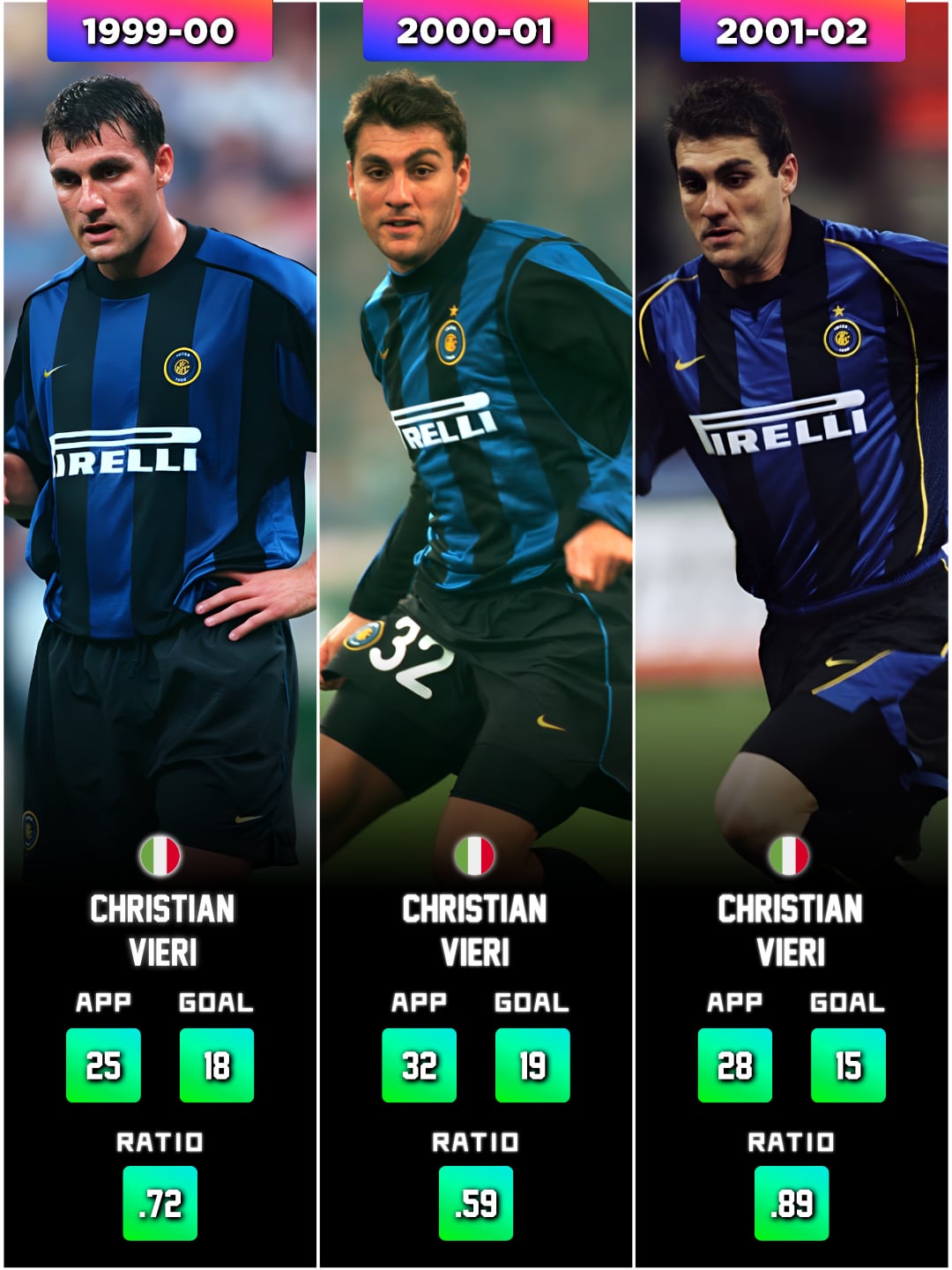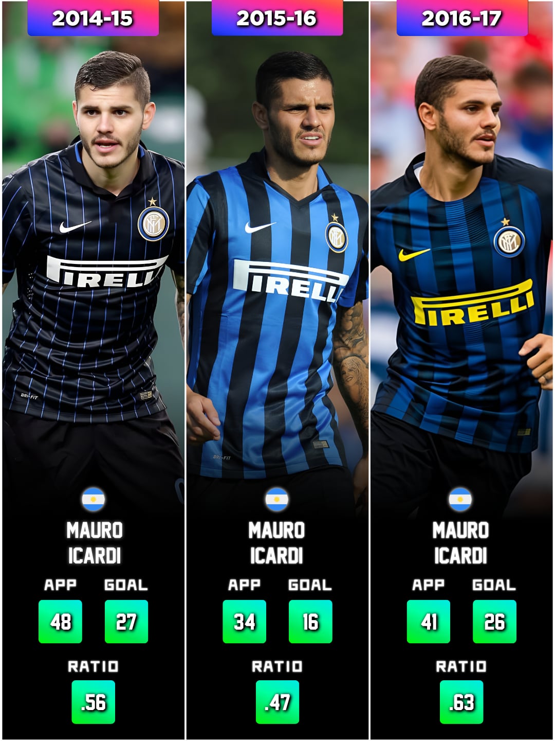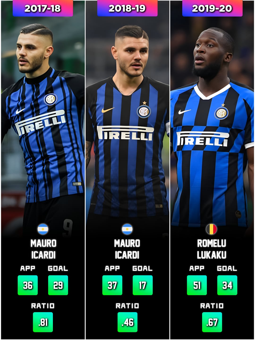 Icardi’s 0.81 goals per match in 17-18 is insane