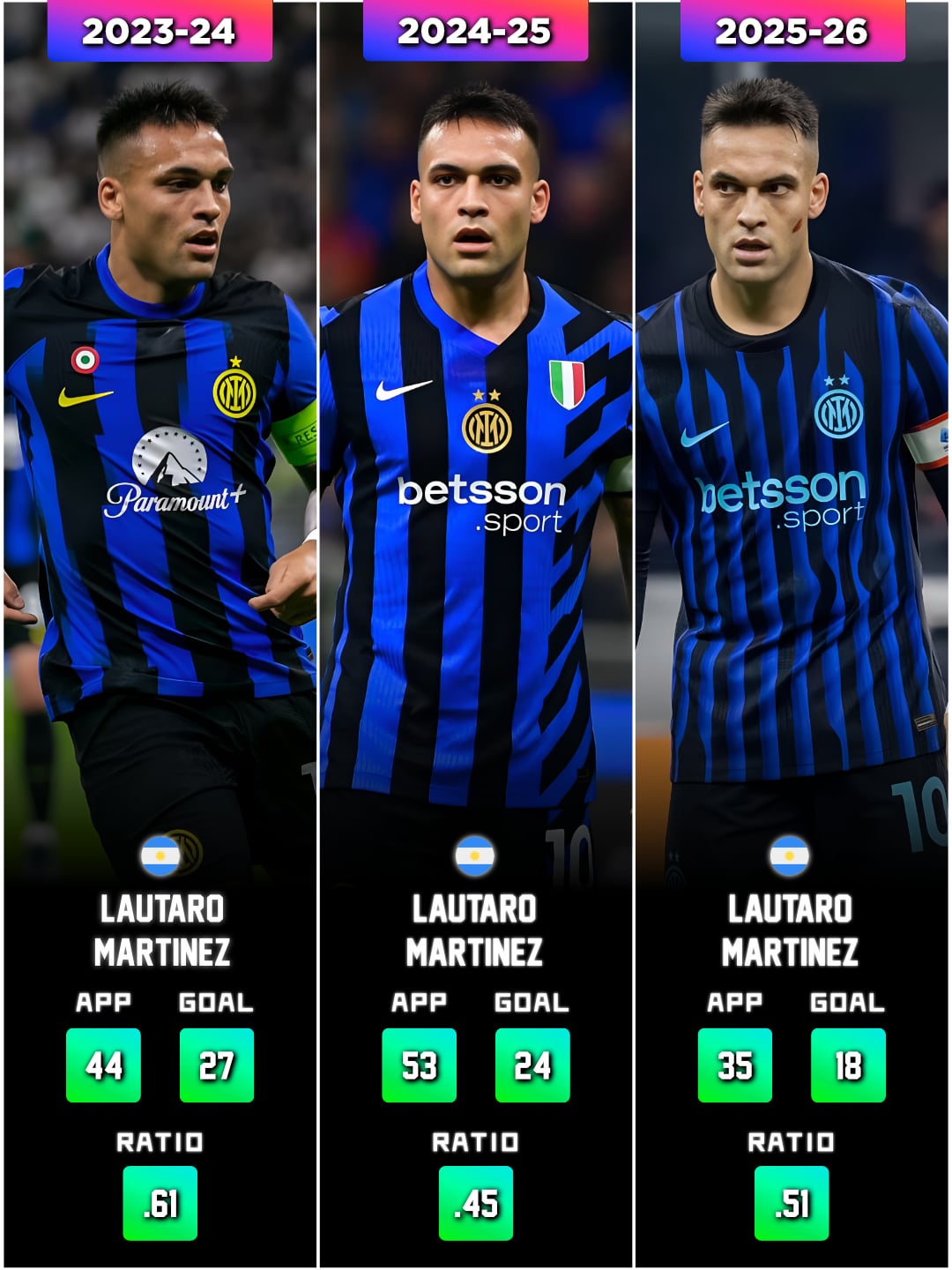 Så lautaro will get his 6th in a row.