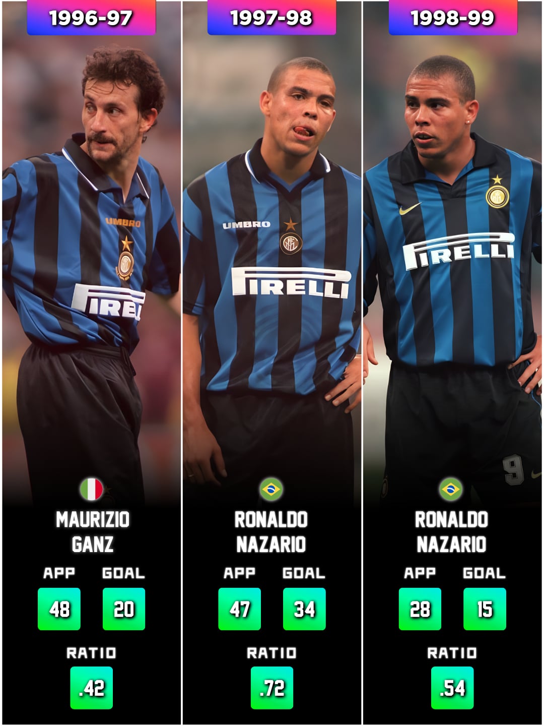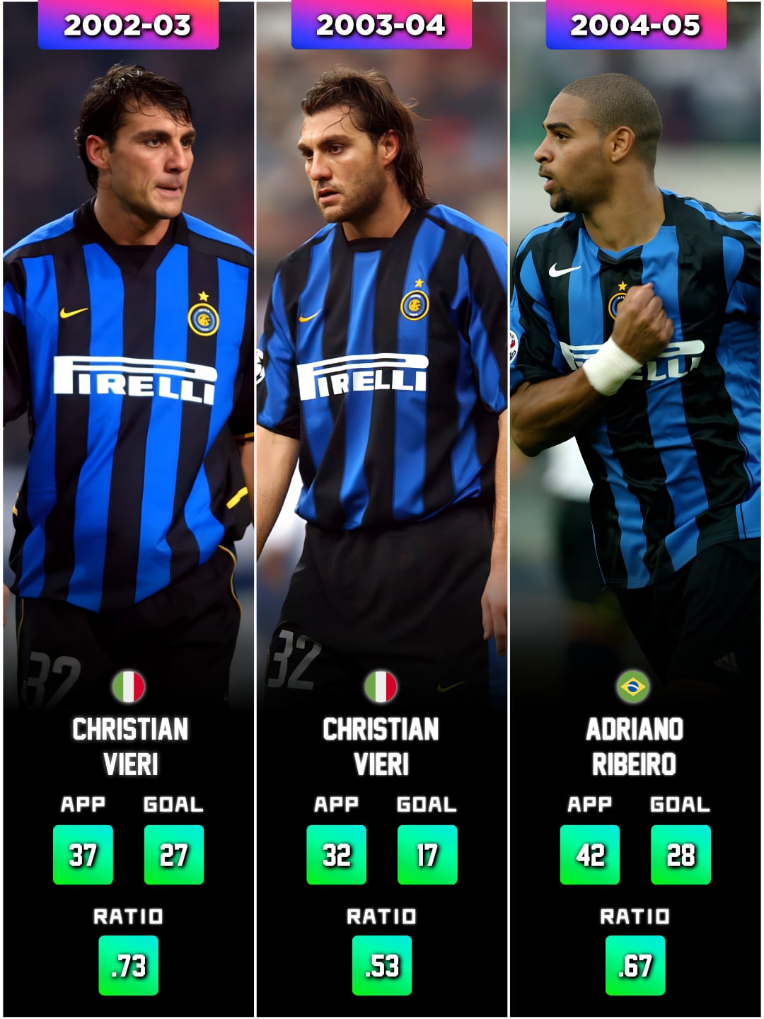 Share Facebook Twitter LinkedIn Pinterest Bluesky Threads These stats cover ALL competitions, not just league matches. The 2025-26 season is still counting. 50% of the top scorers have been Argentinian for the past 30 years. by LYY_Reddit F.C. Internazionale Milano fc inter milan football inter milan Italian Football Italy serie a Soccer