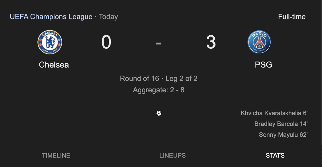 L’histoire est belle quand même, la moitié du stade a compris qui était vraiment la meilleure équipe du monde à ce moment-là et a abandonné son équipe en quittant Stamford bridge. Karma with PSG