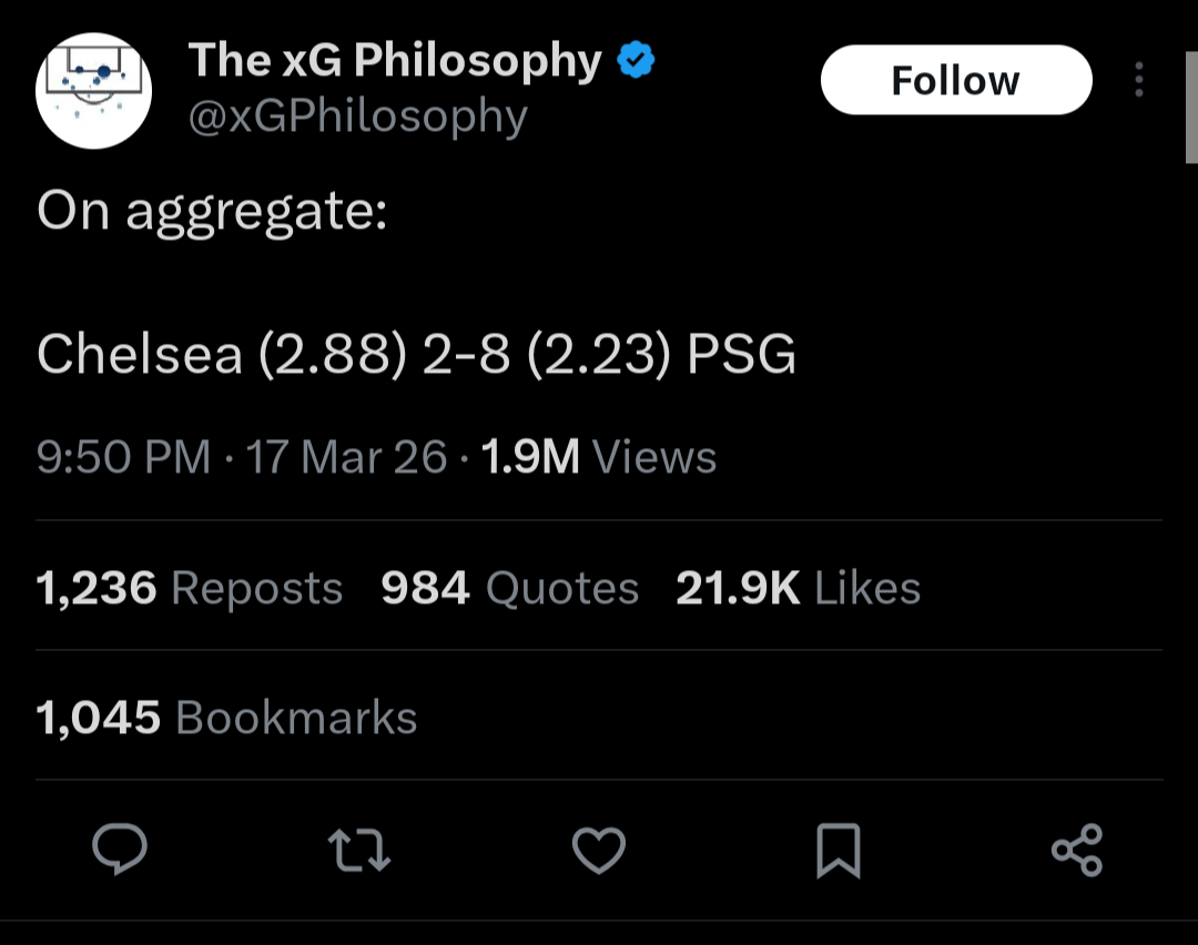 XG is a bullshit statistic that is extremely misunderstood by the average fan. These are completely different numbers compared to what was posted yesterday right after the match, too. PSG didn’t legitimately over perform their xG by 6 goals; I have no clue how someone can justify that metric.