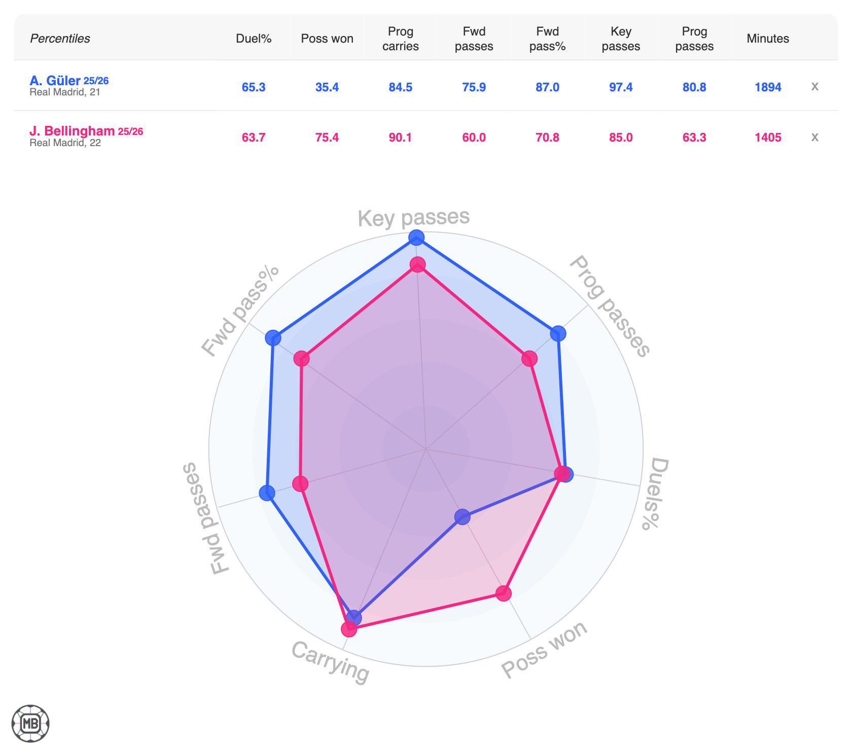 This chart just shows that arda shouldn’t be playing so deep, and that jude should be our left sided 8 with fede and tchouameni