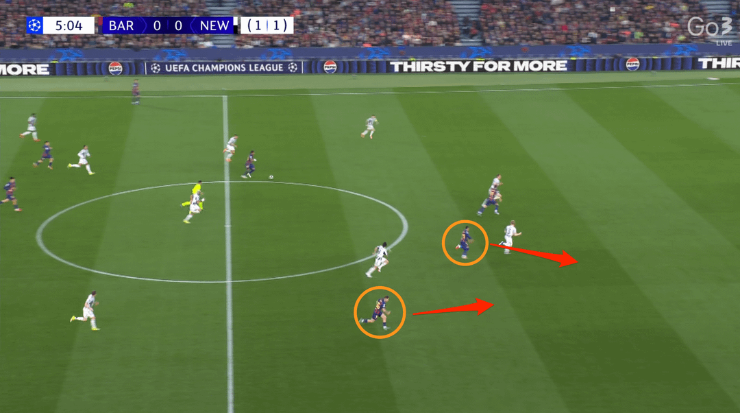 Eddie Howe prepared a full-pitch man-marking press and fast transitions down the flanks when Barcelona lost possession. The plan required high physical intensity, as the team pressed all the way to the goalkeeper, and a single mistake in the press could compromise the entire system.
