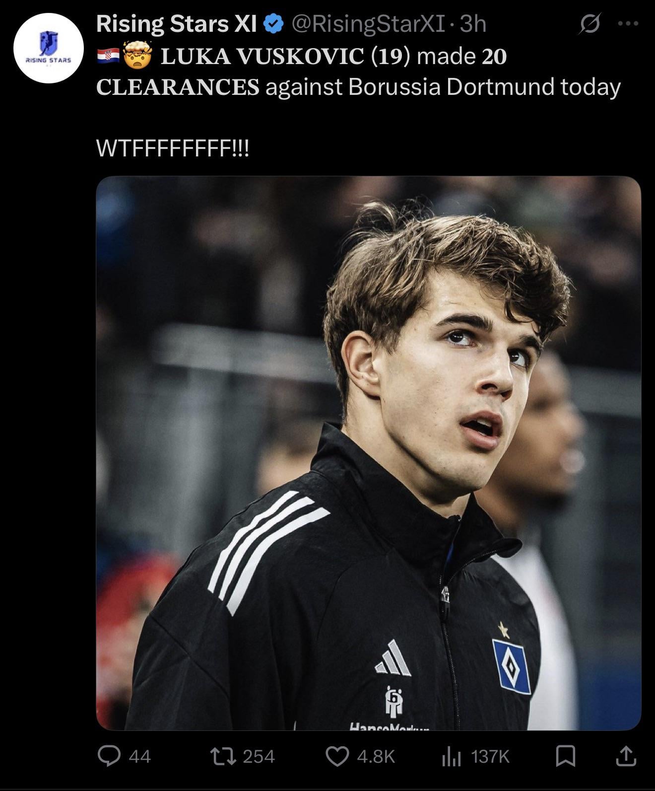 I’d say it’s much more likely that we loan him back to Hamburg for another year or he plays in a back four after we’ve sold one of Romero or Van de Ven (or both, who knows) but he’s likely not ready for the Prem yet.
