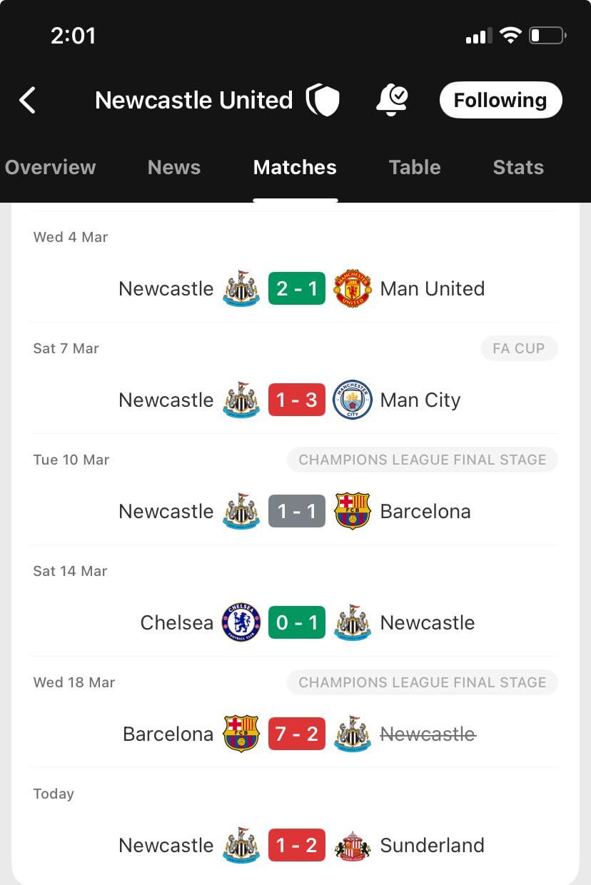 You’re telling me Newcastle beat Man Utd and Chelsea and got a draw against Barcelona this month?