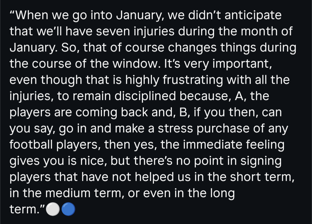 He said that but then made Gallagher our highest paid player? I guess that’s not a sign of desperation but incompetence because we definitely did not need a Gallagher-type player especially when someone like Lookman was available.