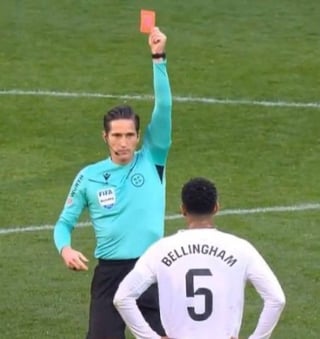 Someone insults the referee over and over and nothing. Jude says “fuck off” like come on. And gets a red!!!