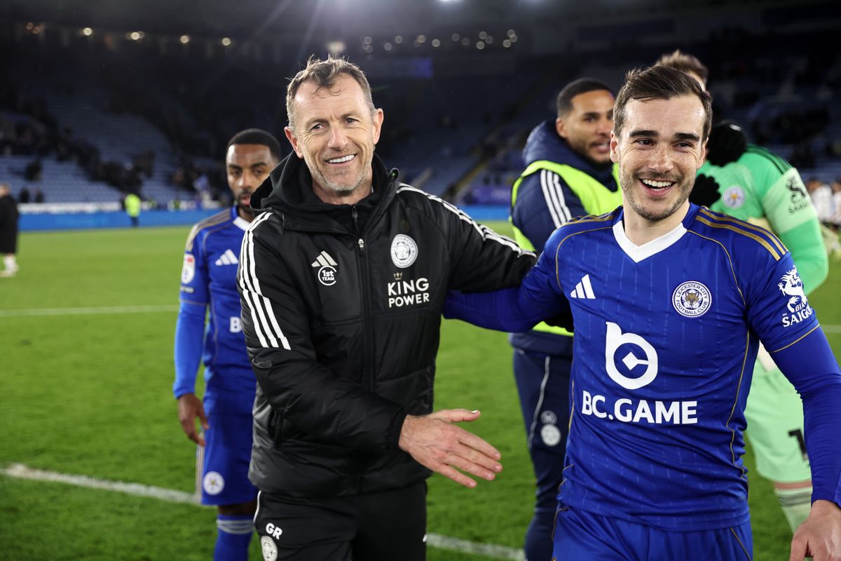 Leicester City boss Gary Rowett and midfielder Harry Winks after the Foxes’ win over Bristol City(Image: Photo by Plumb Images/Leicester City FC via Getty Images)
