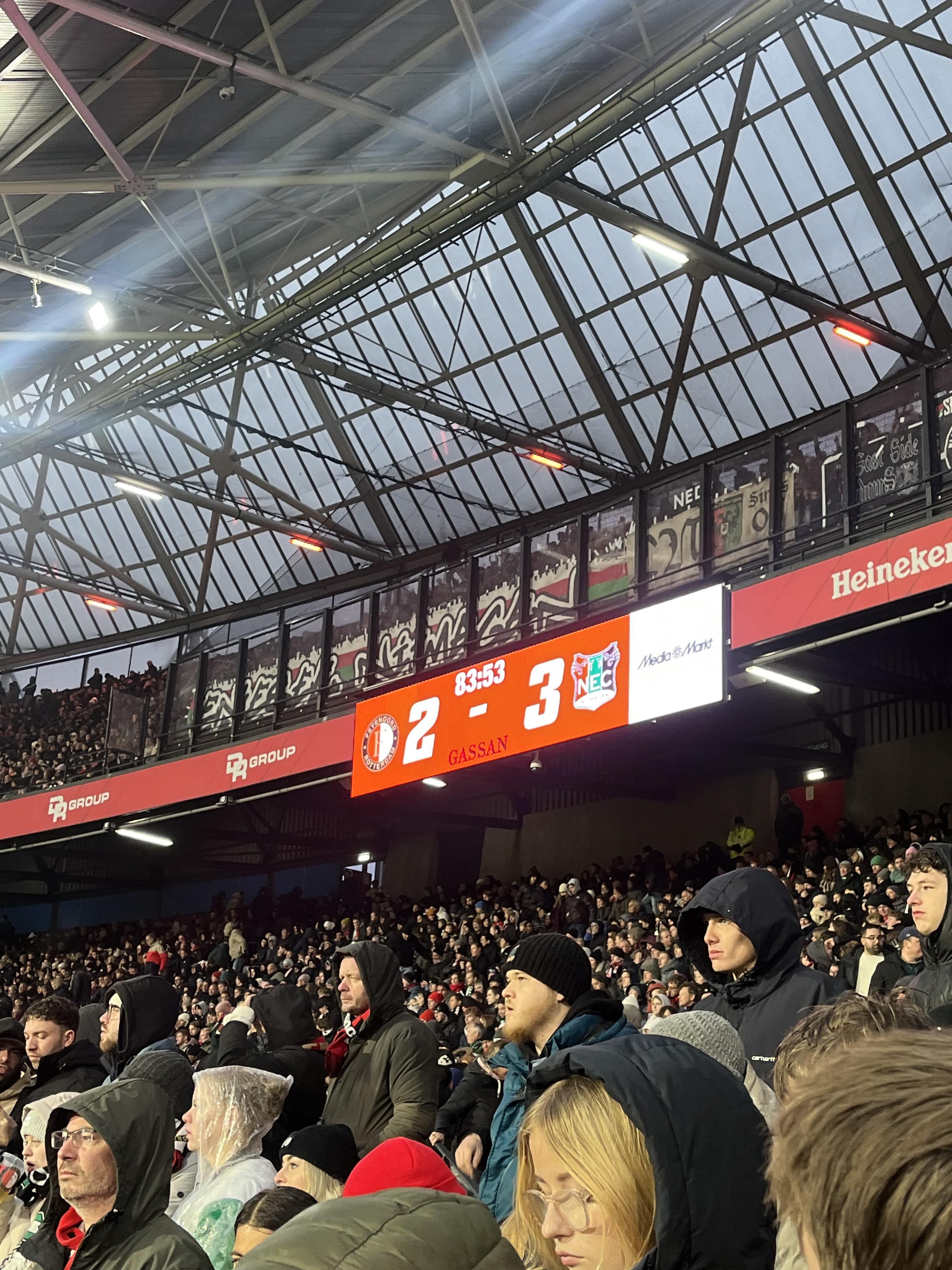 Bovendien merkte ik een cultuur verschil tussen de clubs, ik merkte dat ik veel gesprekjes had met supporters in de Kuip die ik niet kende, heel gezellig, ik vertelde niet dat ik Ajacied was maar wel dat het m’n eerste keer in de Kuip was haha. Bij Ajax zie ik toch dat mensen iets meer met zichzelf bezig zijn en heb ik eerlijk gezegd niet zo vaak een gesprekje met een vreemde..