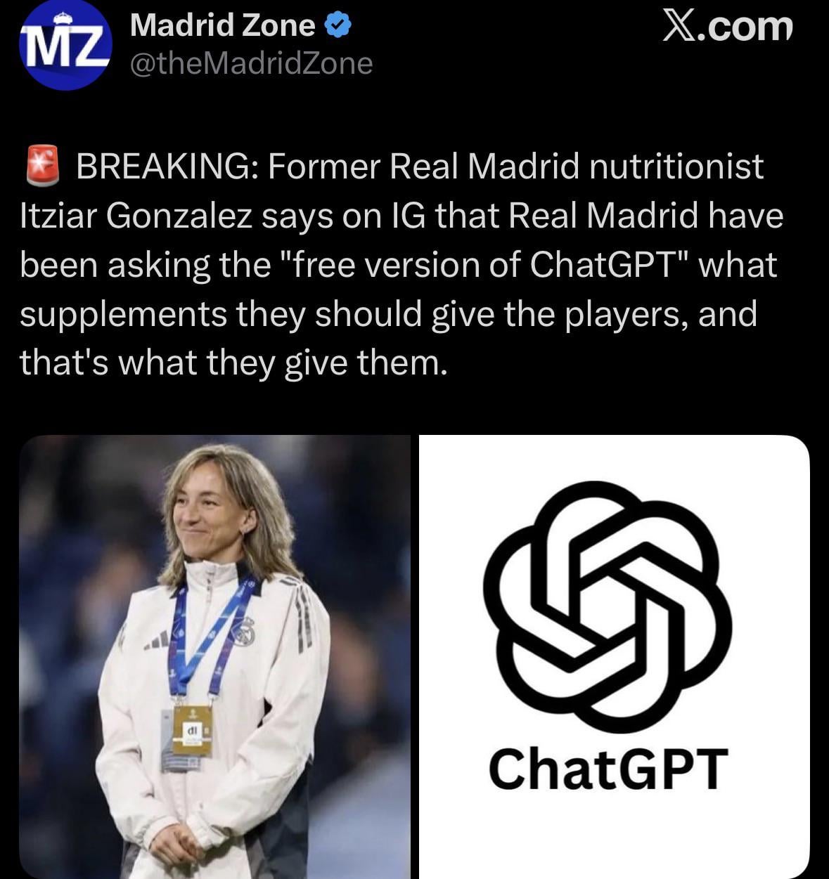 lol so basically Moreno got sacked for letting AI coach a Russian team and now Madrid is out here letting AI decide player supplements