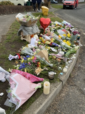Flowers were left to commemorate baby Victoria whose remains were found in the Roedale Valley allotments in March 2023