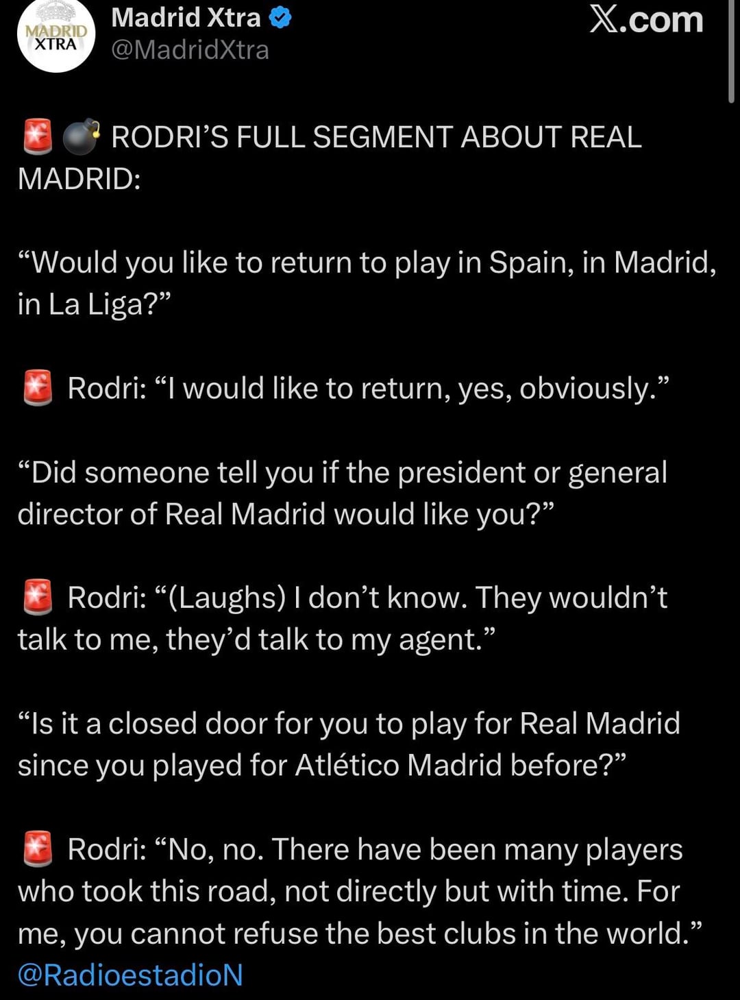 Rodri said yes, but nobody asked him anything.