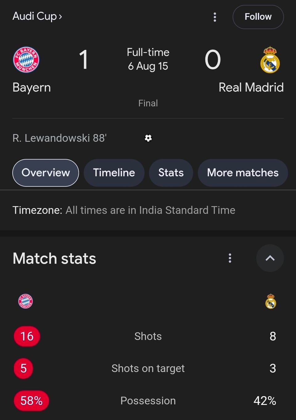 But the examples you showed are 2 friendlies and Bayern haven’t won against Madrid in the Uefa CL for more than 10 years (we can discuss some referees’ decisions, Ulreich’s slip or Raphina’s assist to Ascensio and the list goes on), but the fact is, Madrid is owning Bayern recently.