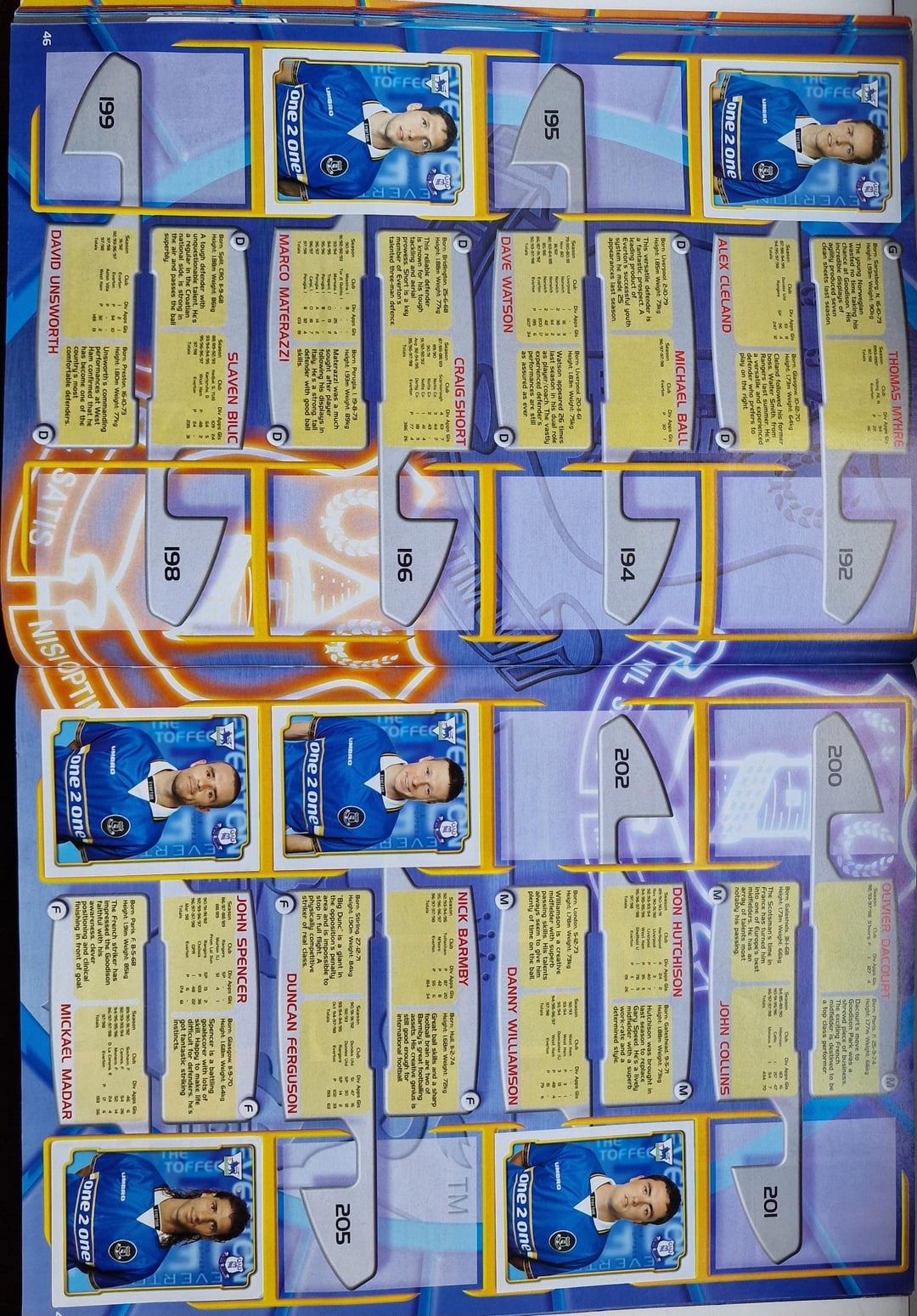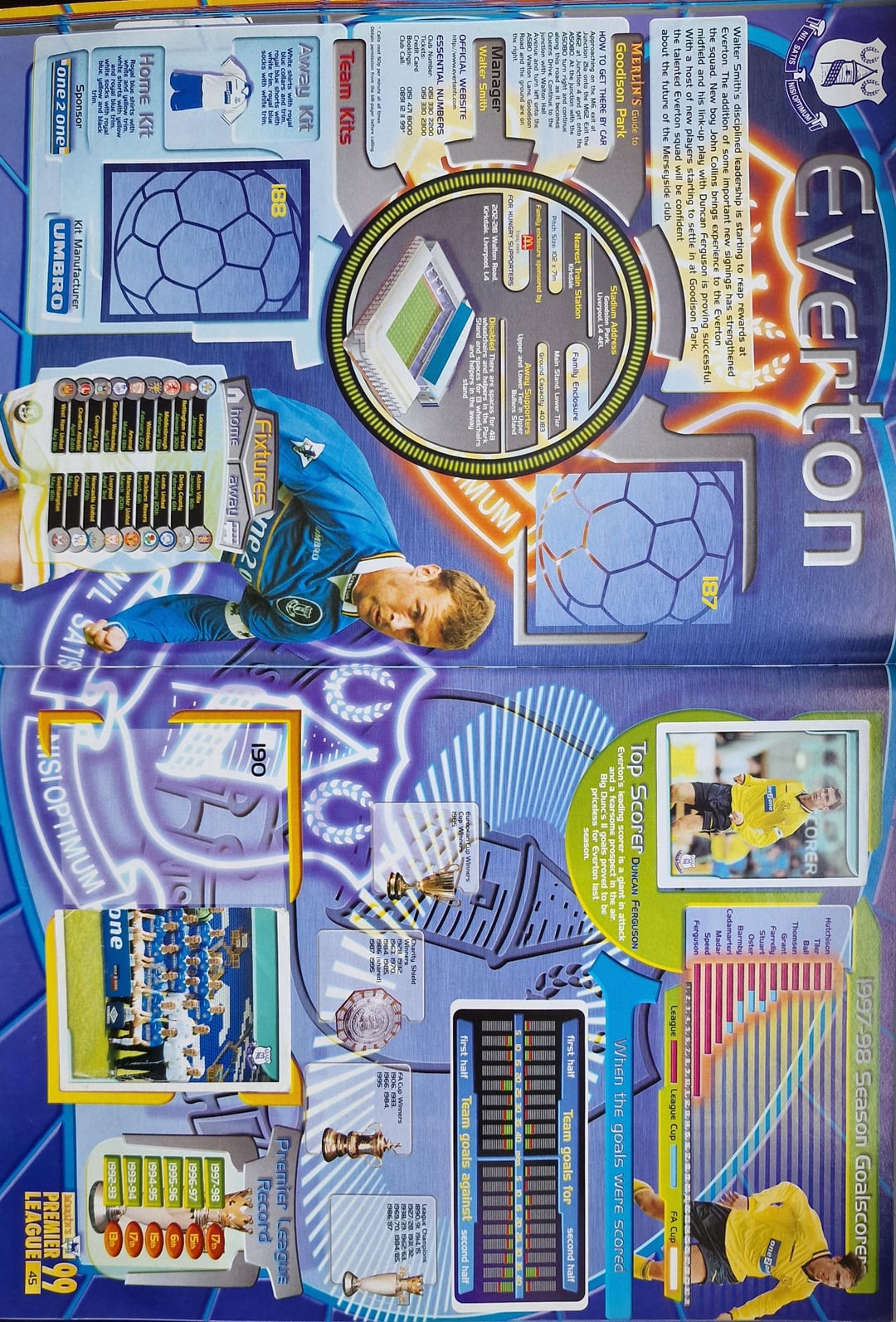 Found my old Premier League sticker collection book from 1998-99. I didn’t get many stickers but folks might find the Everton section an interesting read