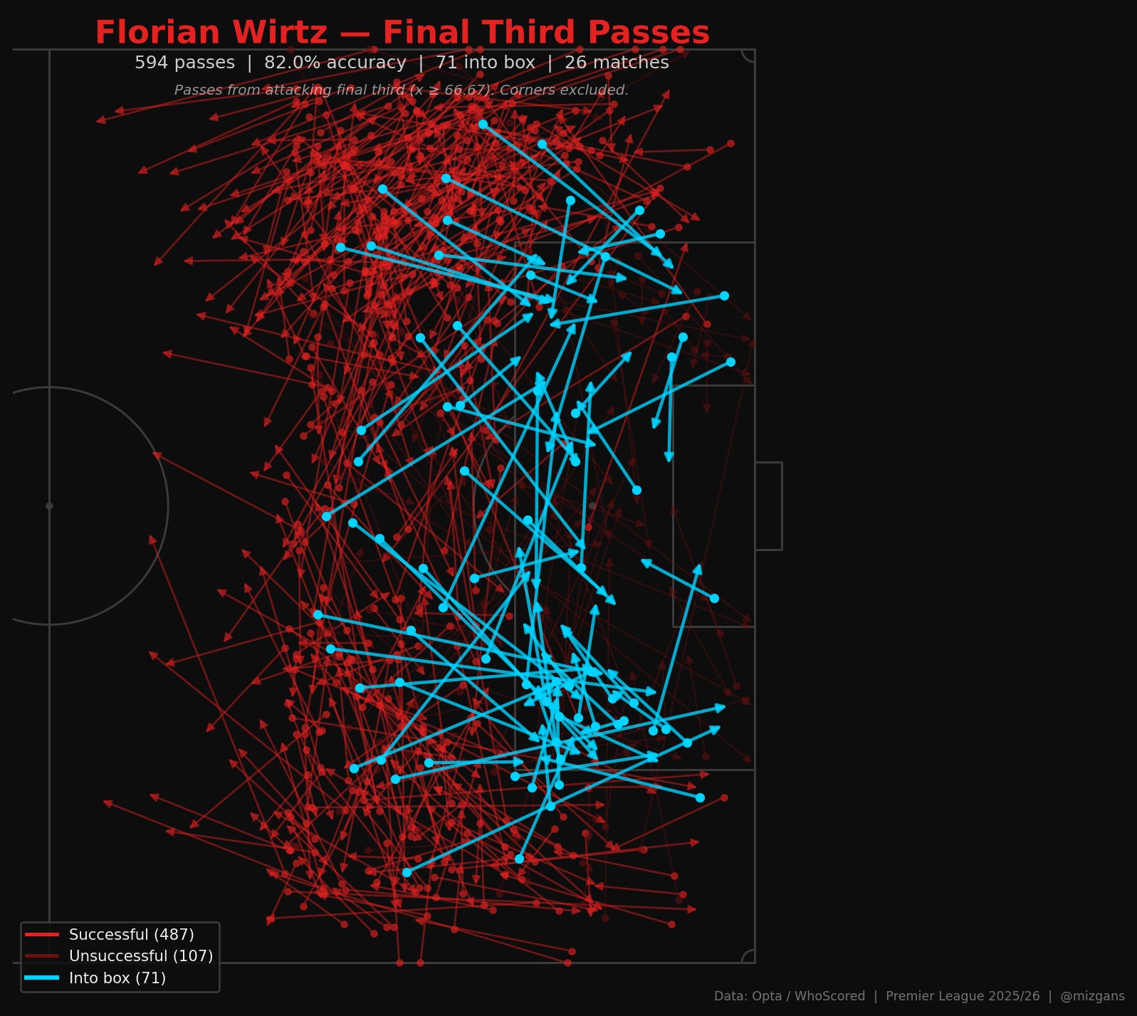 We start with a season-wide analysis of how Wirtz and Szoboszlai have performed on the ball, especially regarding their passing and chance creation from the final third and beyond.
