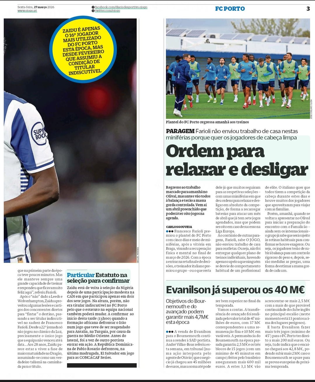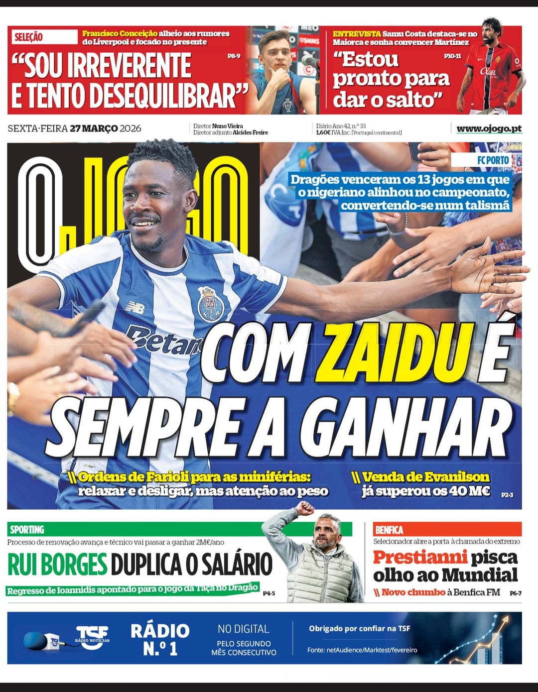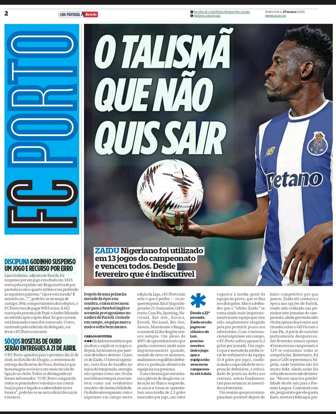 Porra, nao menosprezando grande Zaidu, mas a ultima pagina do jornal o Jogo devia ter mais exposicao