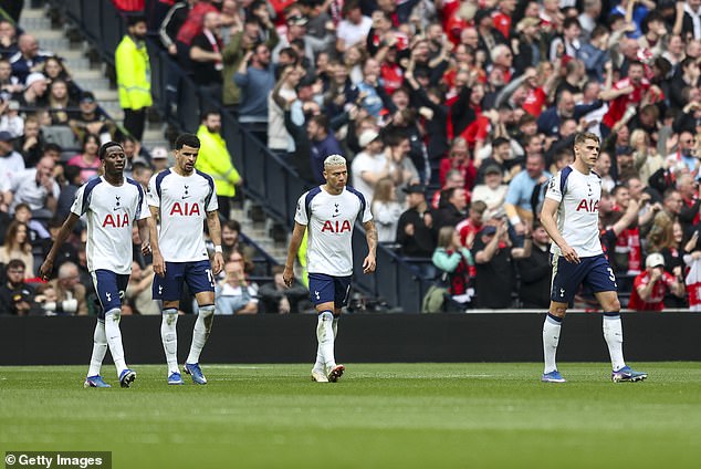 Spurs took the lead through Dominic Solanke in the 34th minute only to collapse when vice captain Micky van de Ven was sent off four minutes later for a foul that conceded a penalty.