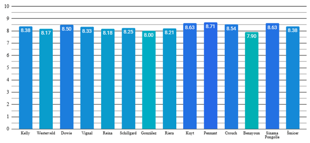 Thiago MOTM, Spearing 2nd, and Stevie G 3rd.