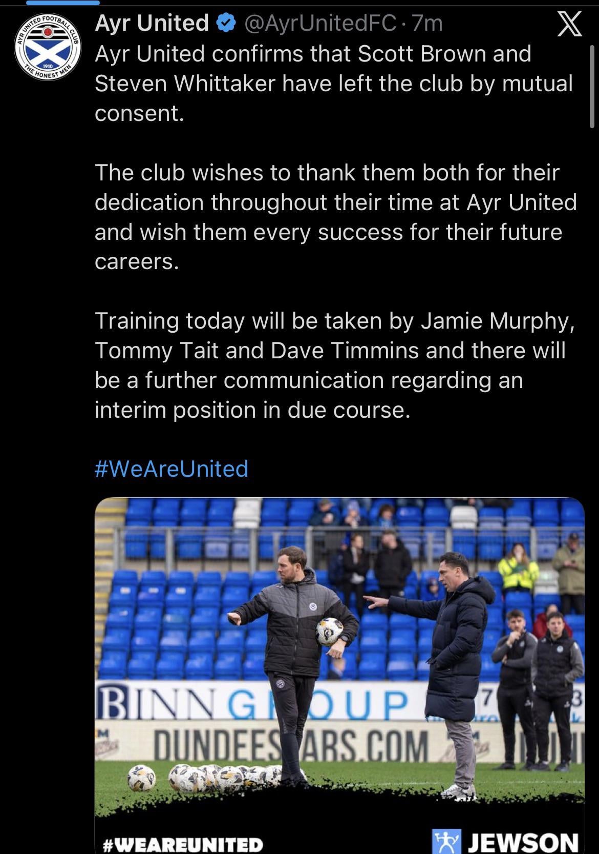 Ayr United will be glad they’re back to being called Ayr United rather than Scott browns Ayr united