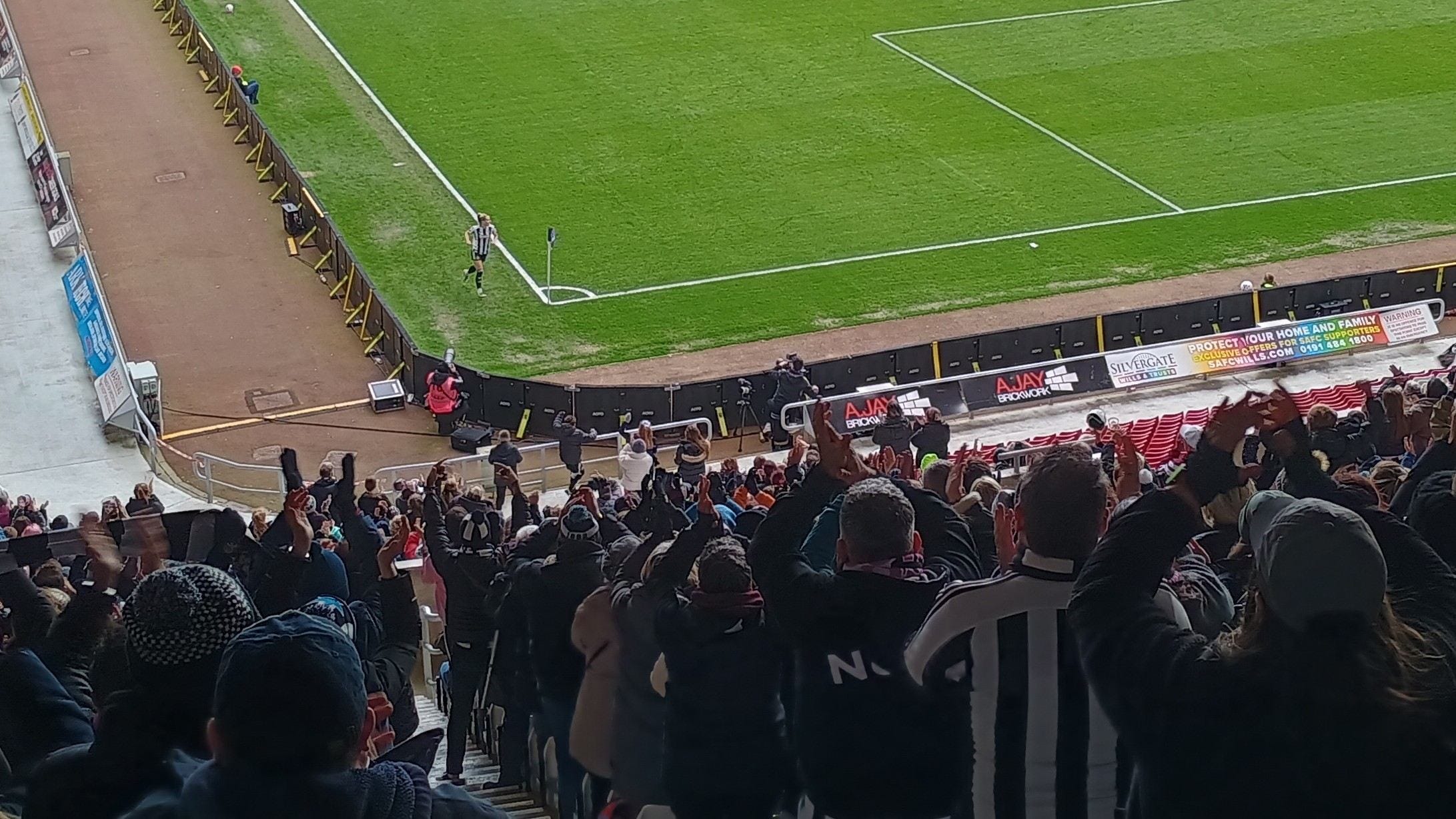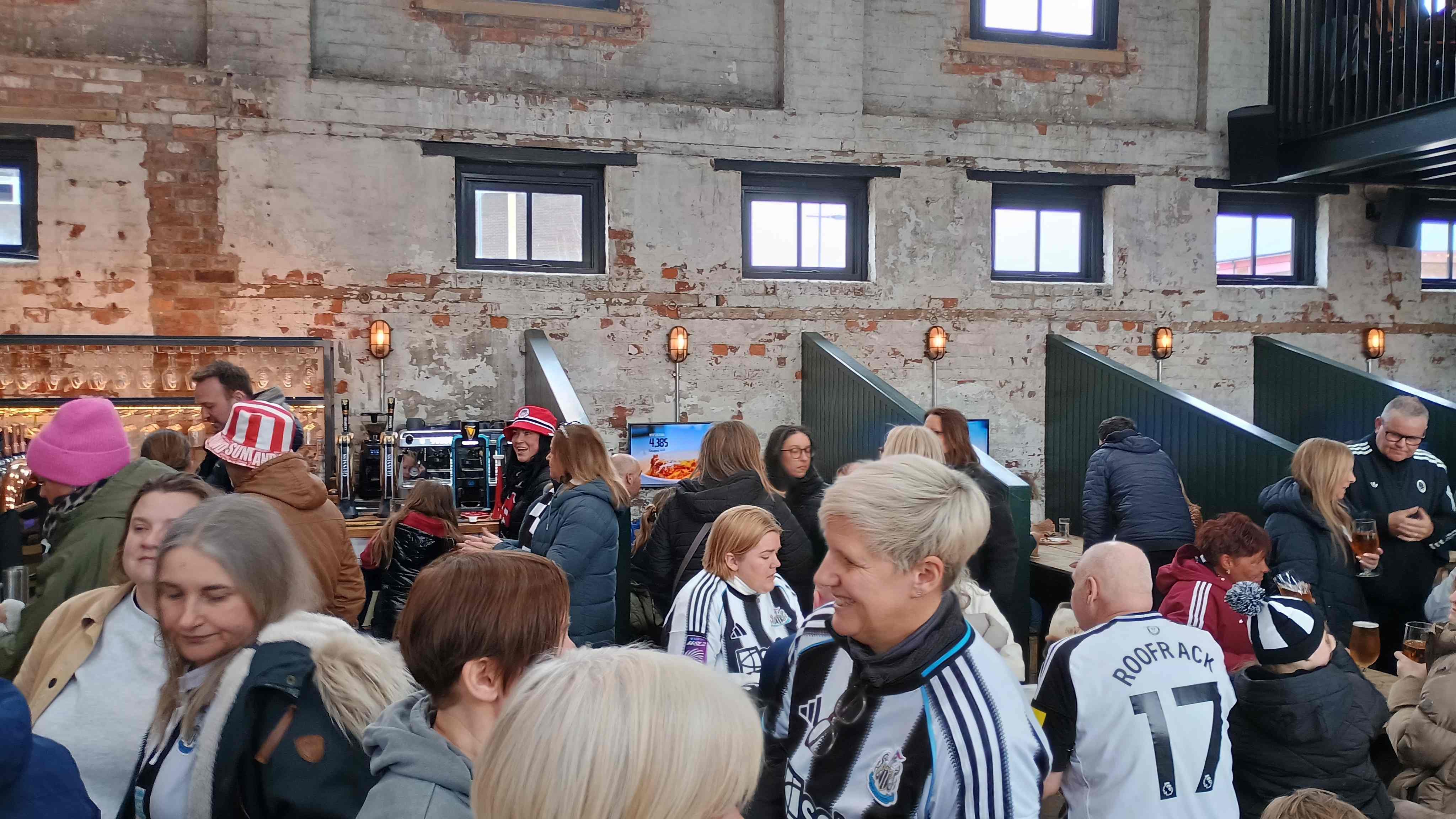 Pre-match I went into the new Sheepfolds Stables bar between the end of the new footbridge and the SoL (a nice bar to be fair) to meet up with friends. Hellie and Varley (both former NUWFC players) were there, as well as a lot of Newcastle fans. I took a photo of the inside to show both sets of fans mixing well but struggled to find many in red & white in attendance!