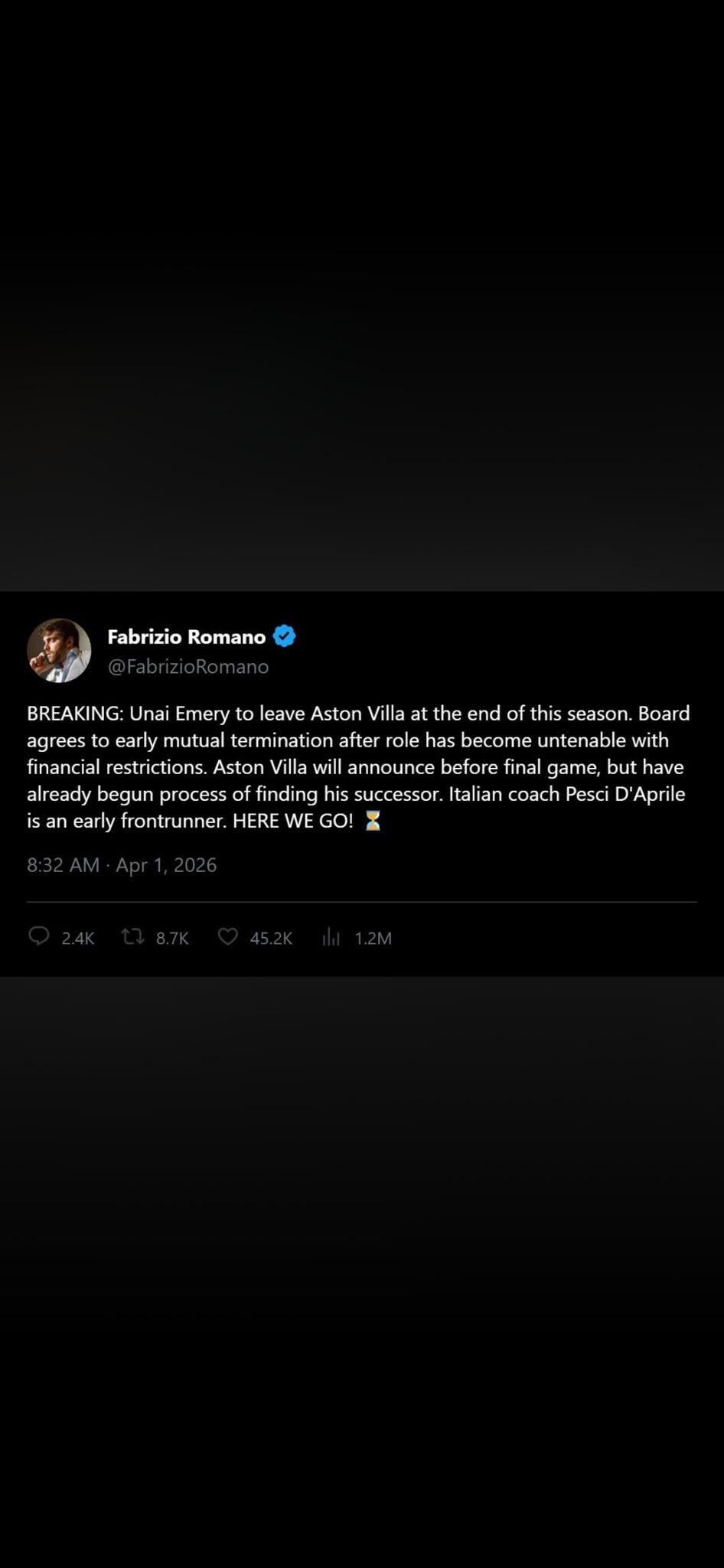 MadLad69_42o on April 1, 2026 10:03 am My cousin literally just sent me this on WhatsApp and I have never googled unai emery so fast in my life.