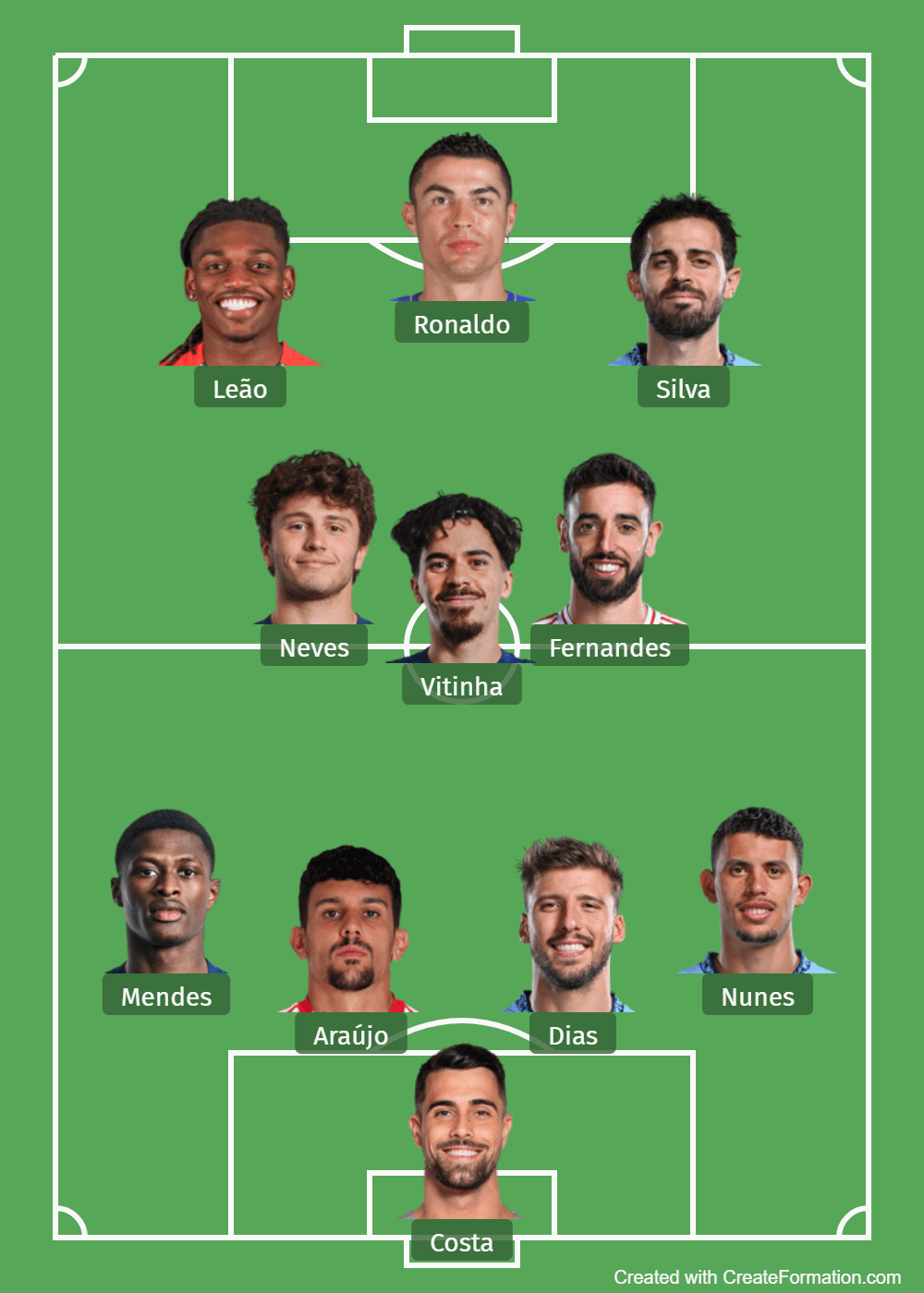 I like it! Probably have Neto over Leão for some games as well as both at the same time if we need to rely on counterattacks more. Trincão will be used for Bernardo at times as well. Araujo is ahead of the others for that spot next to Dias in my opinion, but Veiga and Inacio can be useful. I think Samu Costa and Palhinha are probably dueling for that last midfield role, we’ll see how that shakes out. Also hoping one of Rodrigo Mora or Geovany Quenda can emerge so we don’t have to rely so much on Chico for that super sub role as he is very hot and cold…