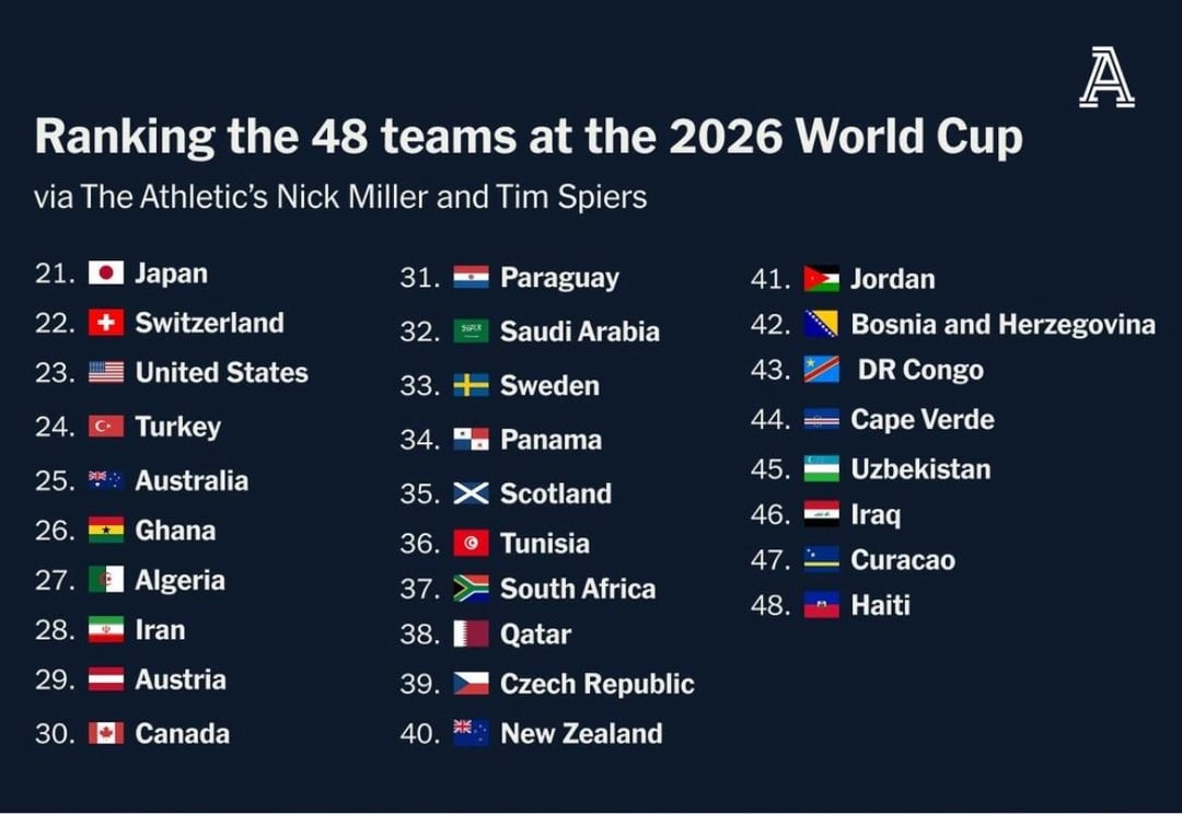 I think it’s about right but Czechia & Bosnia Herzegovina should be above us, maybe Tunisia too