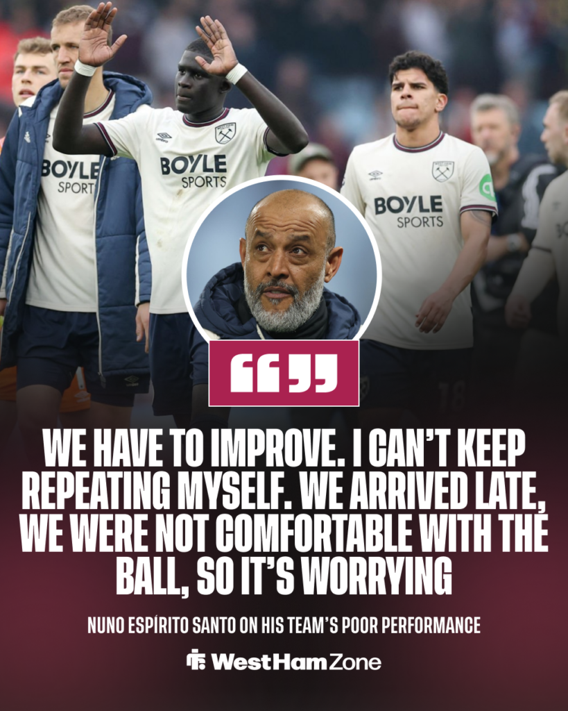 Nuno was critical of his side after they lost to Villa, with the pressure seeming to take its toll a little after they had produced good results against Fulham, Brentford and Man City.