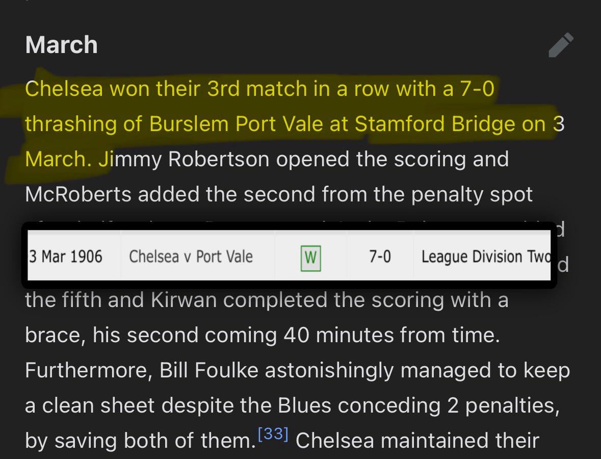 Share Facebook Twitter LinkedIn Pinterest Bluesky Threads Chelsea beat Port Vale 7-0 one hundred years ago (1906) by that7mad7 Chelsea Chelsea Football Club