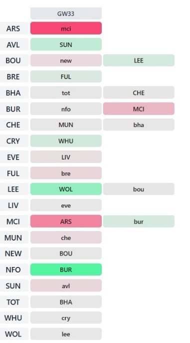DOUBLE GAMEWEEK 33: FINALISED FIXTURES