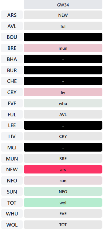BLANK GAMEWEEK 34: FINALISED FIXTURES